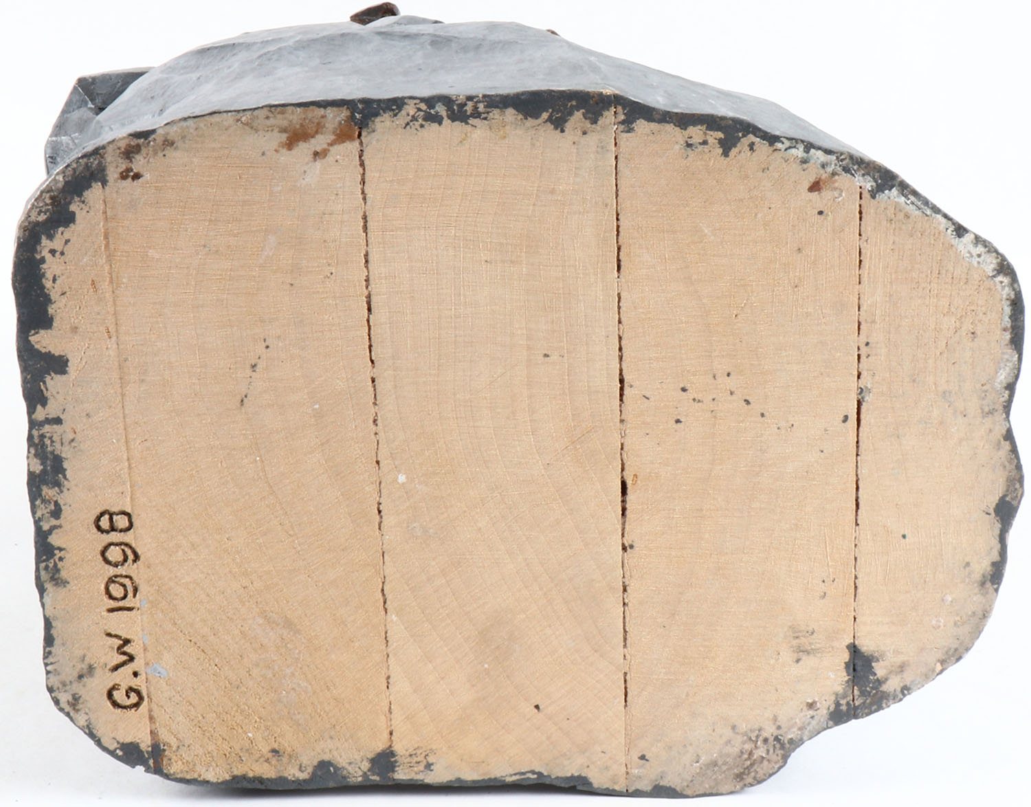 Hand carved & painted by G.W., has hunters carrying a Blesbok? With gun on front, 10'' x 17''. Grade: Excellent - Value: 6 to 30
