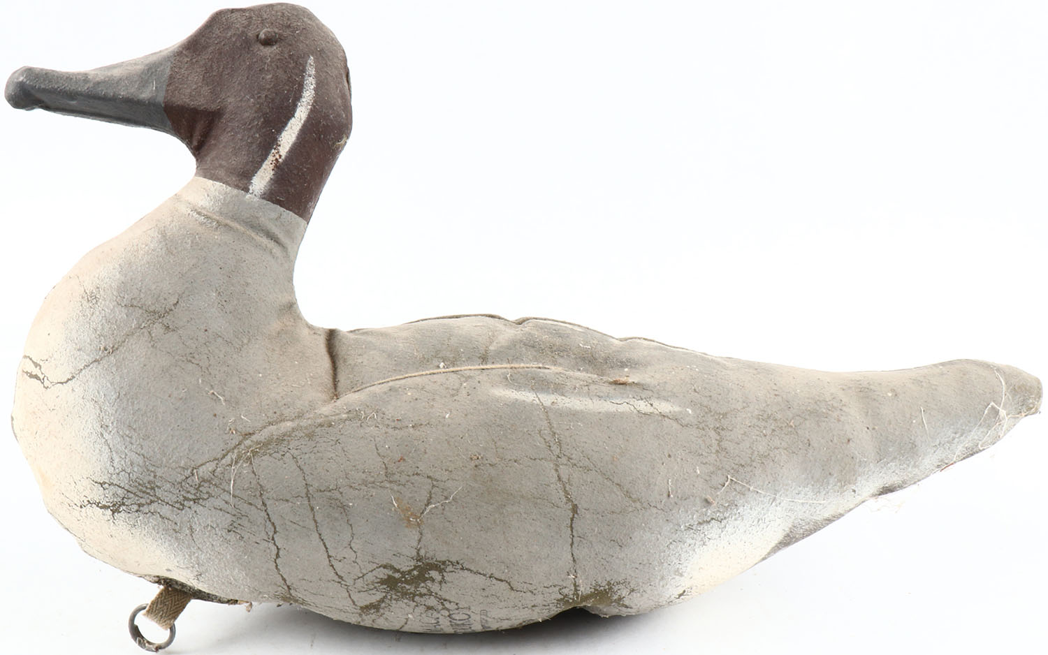 Pintail Drake by Macay Dukoy, glass eyes, canvas over cork, original paint, structurally excellent, well marked on bottom. Grade: Excellent + - Value: 10 to 50