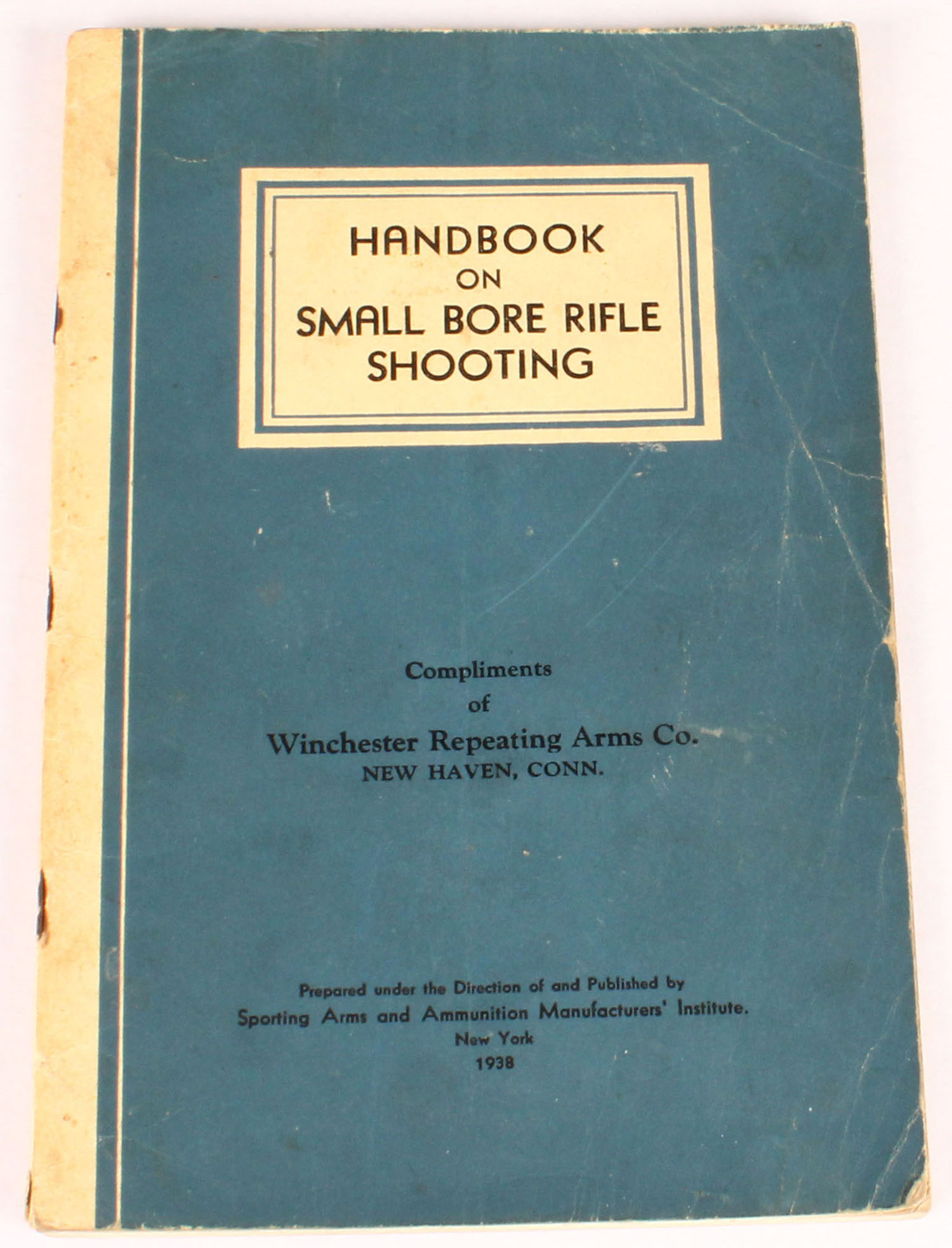 Handbook on Small Bore Rifle Shooting: Equipment Marksmanship Target Shooting, Practical Shooting, Rifle Ranges, Rifle Clubs 1938 by Colonel Townsend Whelen, 6'' x 9''. 76 pages, pages clean, staplebound. Grade: Excellent - Value: 2 to 50