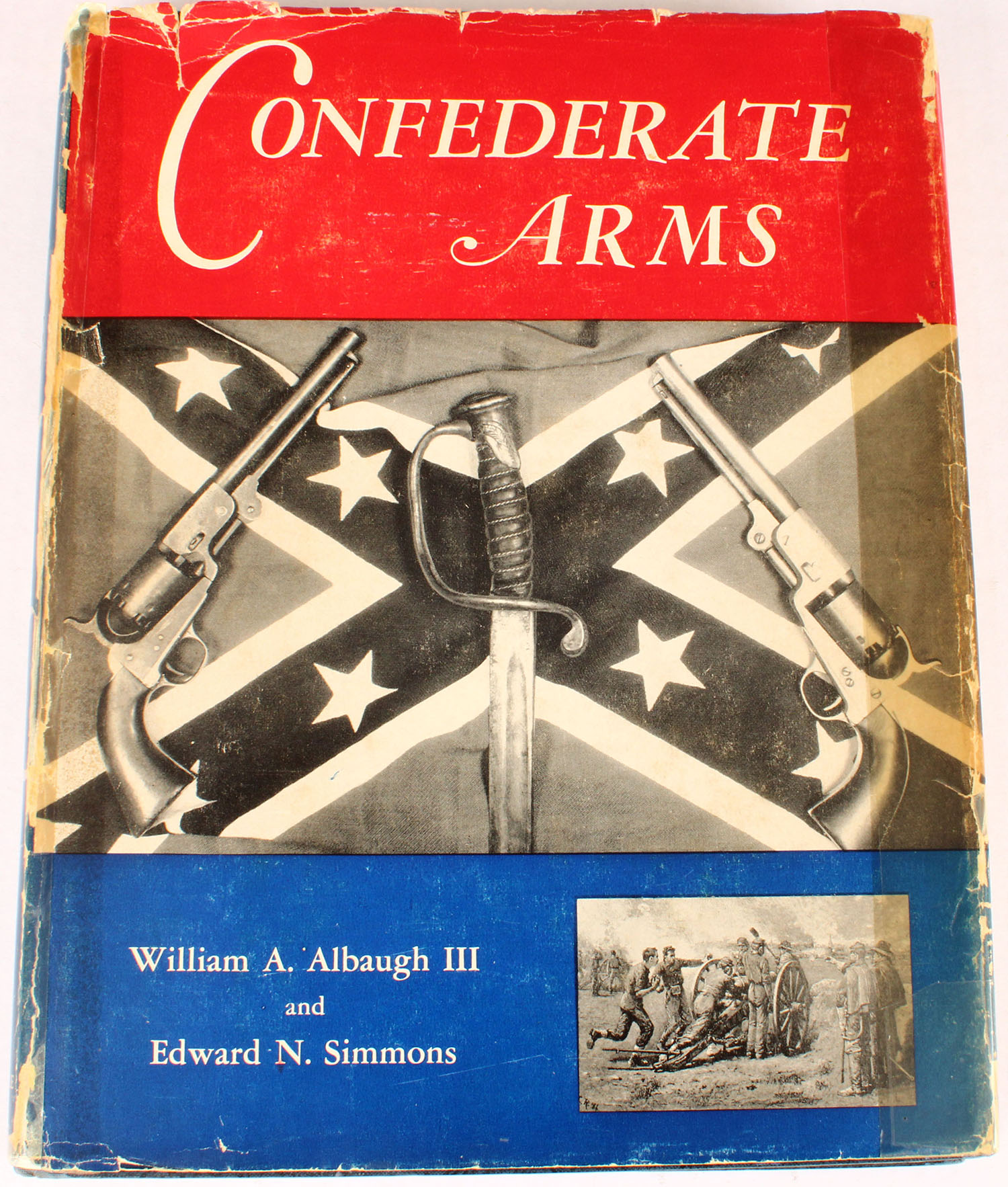 Confederate Arms by William A. Albaugh III and Edward N. Simmons 1957, 9'' x 11''. 278 pages, pages clean, binding tight, hardcover and dustjacket very good, dustjacket shows wear, b/w images. Value: $125 Grade: Very Good ++ - Value: 20 to 125