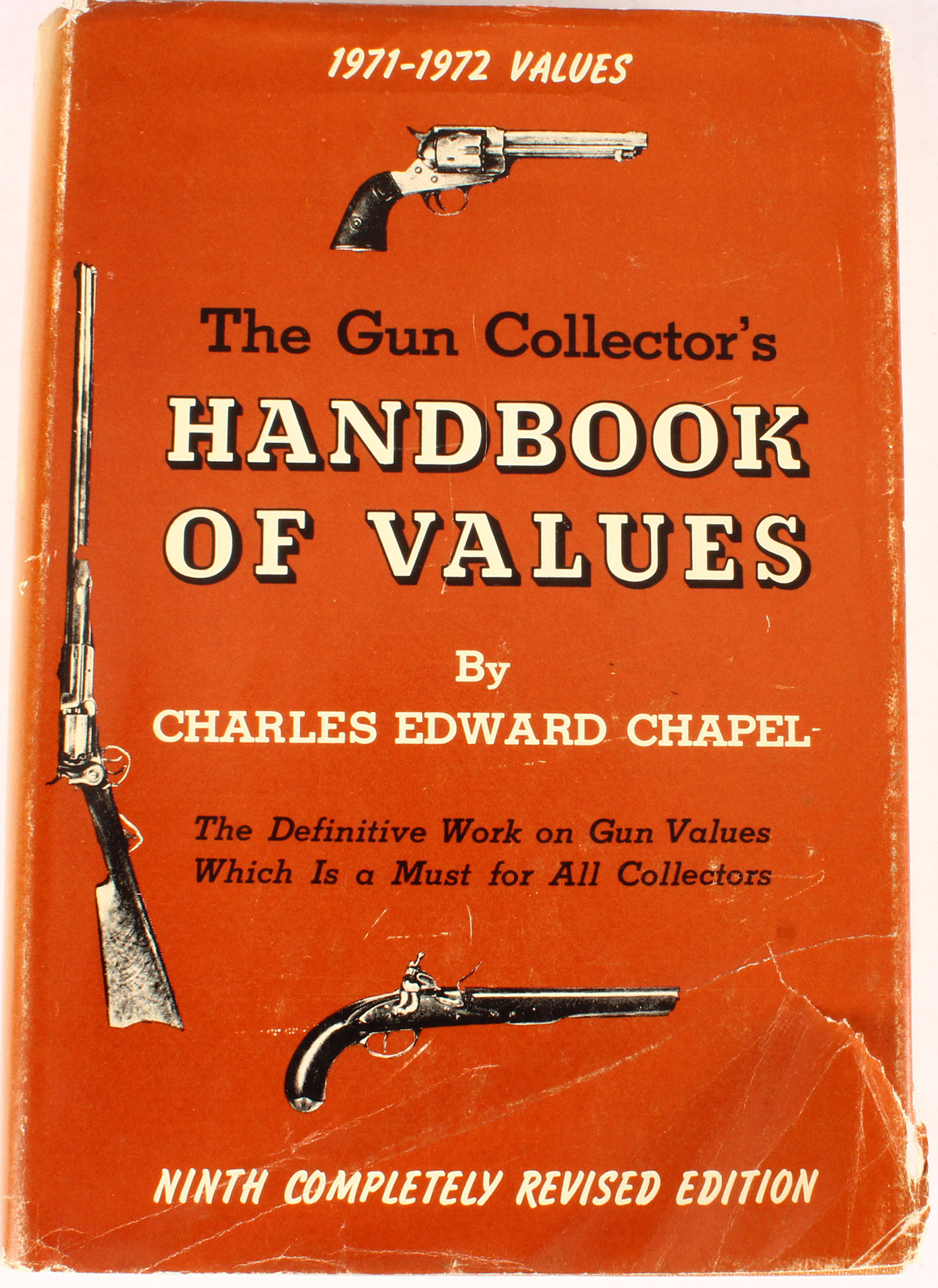 The Gun Collector's Handbook of Values by Charles Edward Chapel 9th completely revised edition, 6'' x 9''. 398 pages, pages clean, binding tight, hardcover excellent, dustjacket very good with some tears. Grade: Very Good ++ - Value: 2 to 40