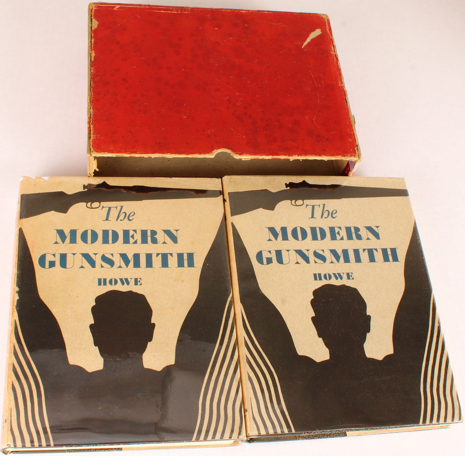 The Modern Gunsmith by James Virgil Howe Volume 1 and 2, 8'' x 10 1/2''. Has hardcover sleeve, pages clean, binding tight, b/w images. Grade: Excellent + - Value: 20 to 200