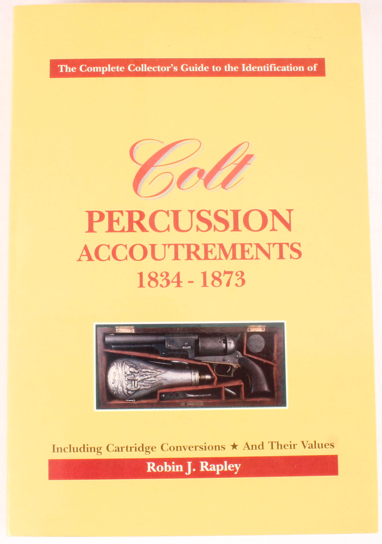 Colt Percussion Accoutrements 1834-1873: Including Cartridge Conversions and Their Values by Robin J. Rapley, 6'' x 9''. 432 pages, pages clean, binding tight, softcover excellent, b/w images. Value: $350 Grade: Excellent ++ - Value: 120 to 350