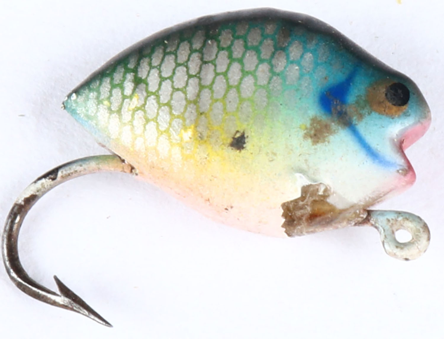 RARE Heddon Punkinseed Fly lure, bluegill finish, PE, plastic lure with small chip to belly. Grade: Very Good ++ - Value: 20 to 100