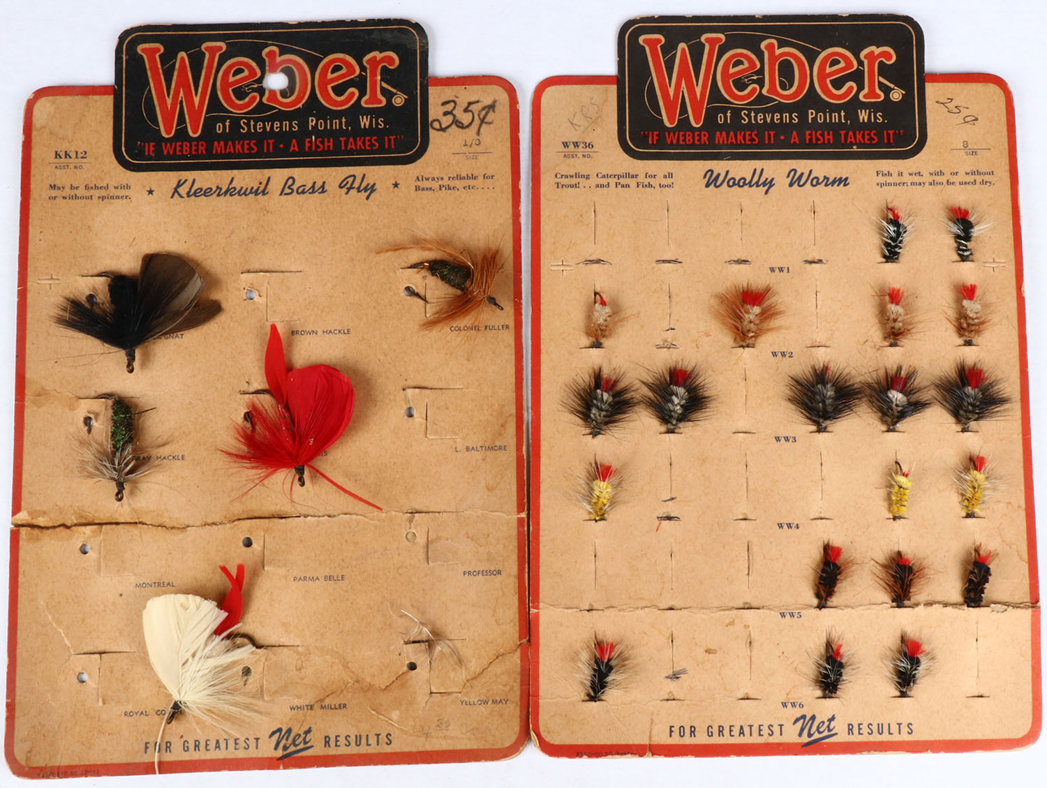 | Lot of 2 Weber Files on display card, Kleerkwil Bass Fly & Will...