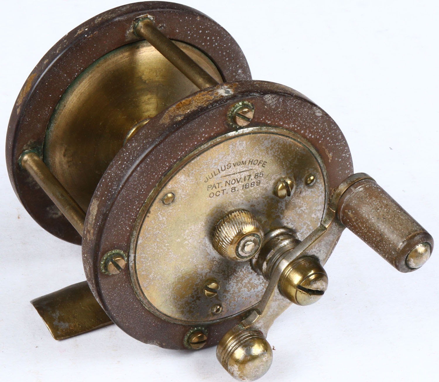 Rare Julius Vom Hofe bait casting reel, Circa 1890, needs some cleaning but works well. Grade: Very Good ++ - Value: 40 to 150
