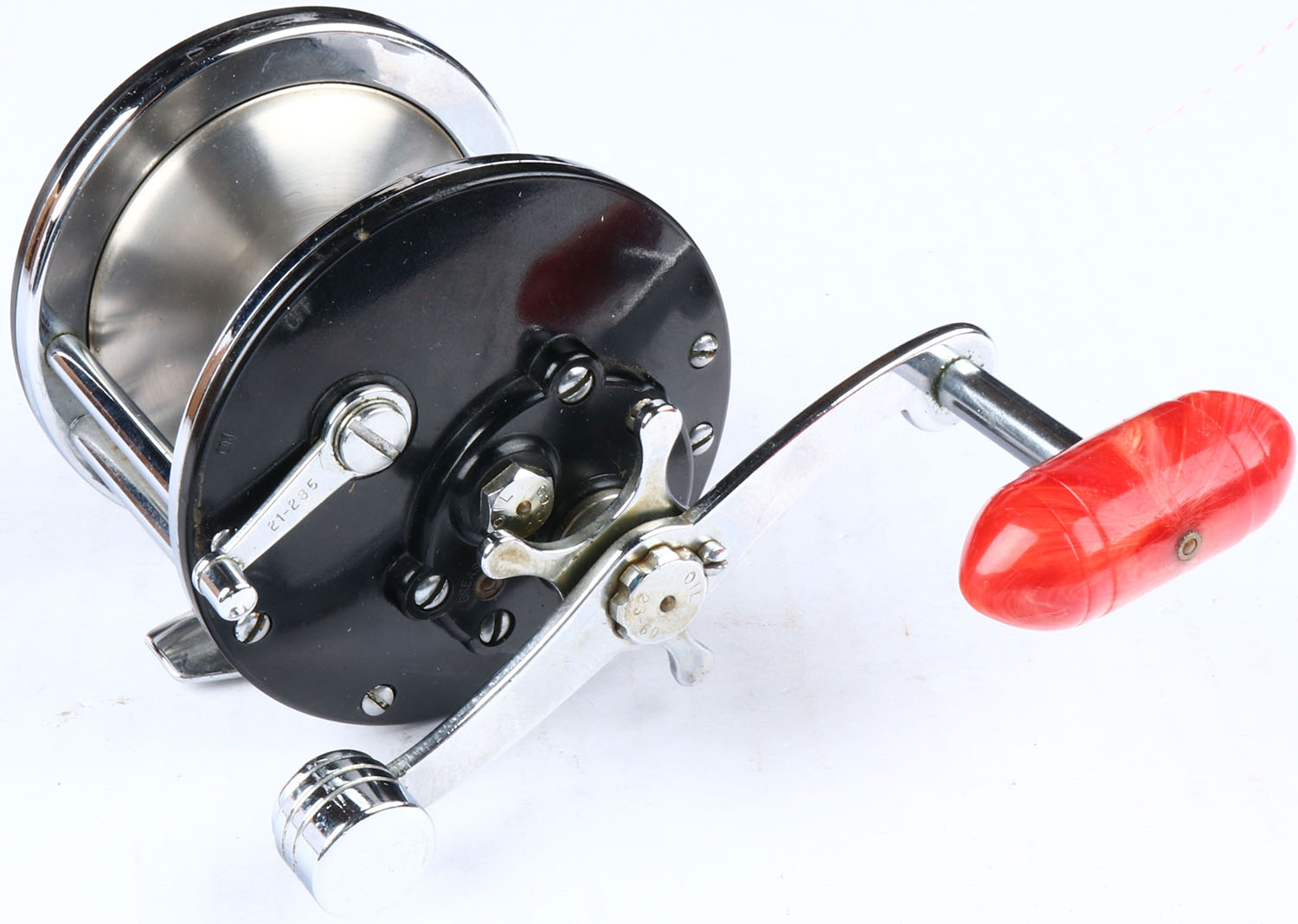 Penn Long Beach No. 60 casting reel, single red handle, works great. Grade: Excellent ++ - Value: 10 to 40
