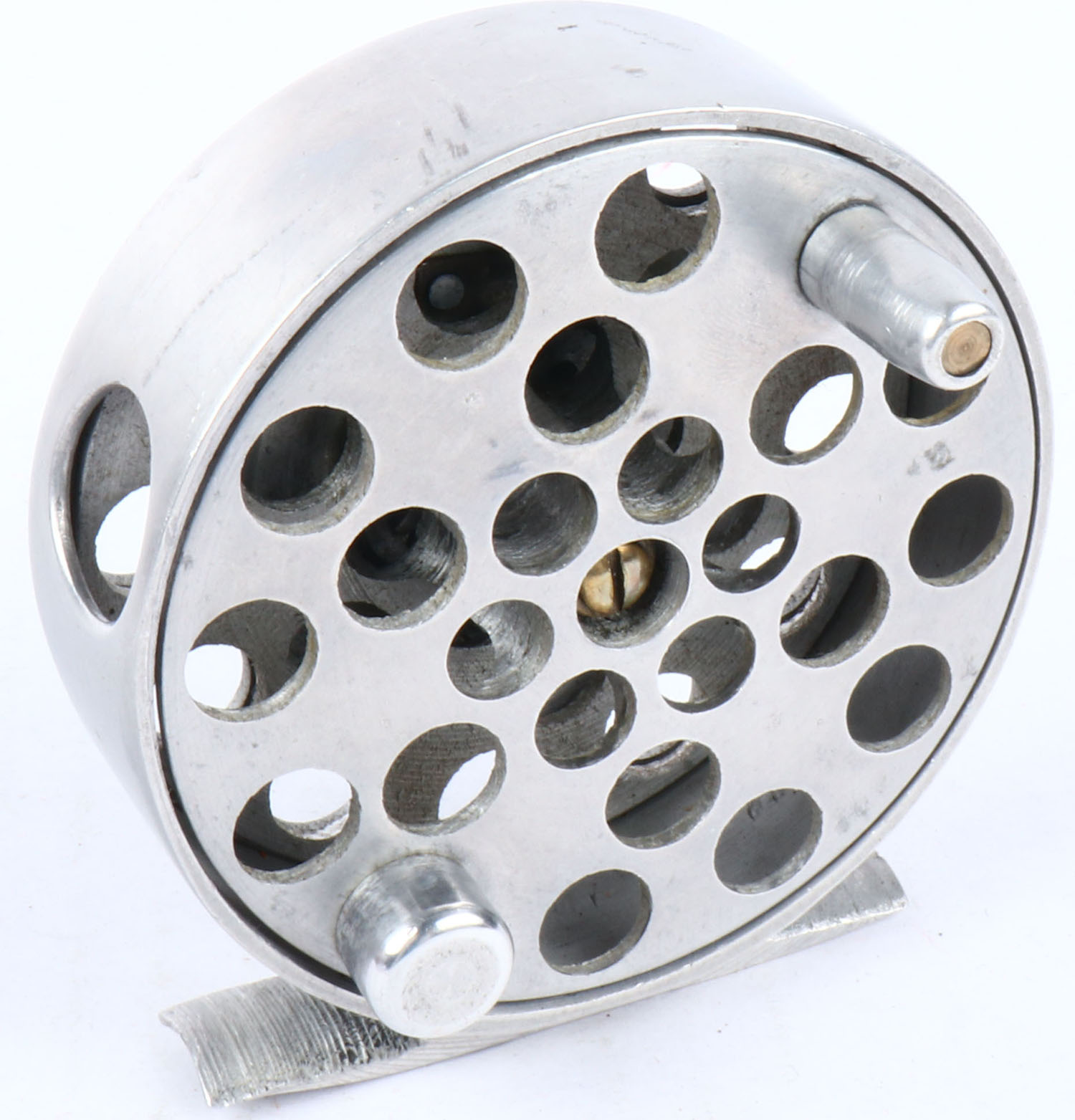 Hand Made fly reel circa 1950, nice enclosed spool, 3 3/8'' dia. Grade: Excellent - Value: 10 to 100