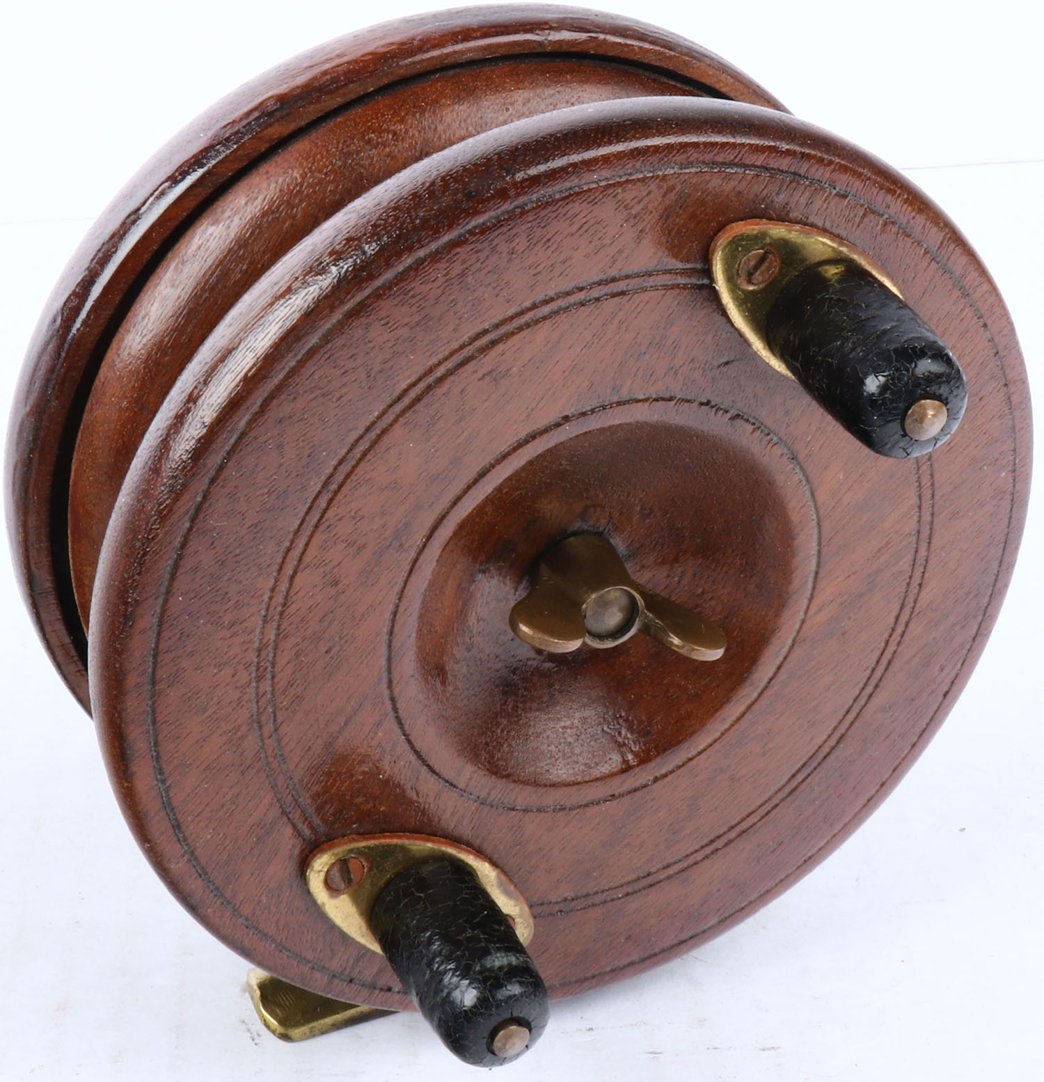 | Vintage Wood/Brass Reel, well marked 5'' dia., has brass fixtu...