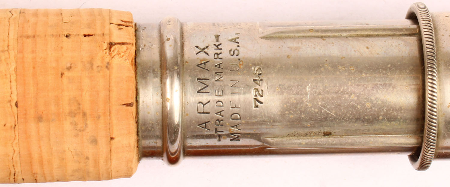 Armax (which is one of the MFG who made rods for Winchester) 3pc. Split bamboo fly rod No. 7246, 9', has one tip & one mid section, all sections are the correct length, all orginal wrapping, cork handle is excellent, well marked on metal, highly collectible. Grade: Excellent + - Value: 40 to 200