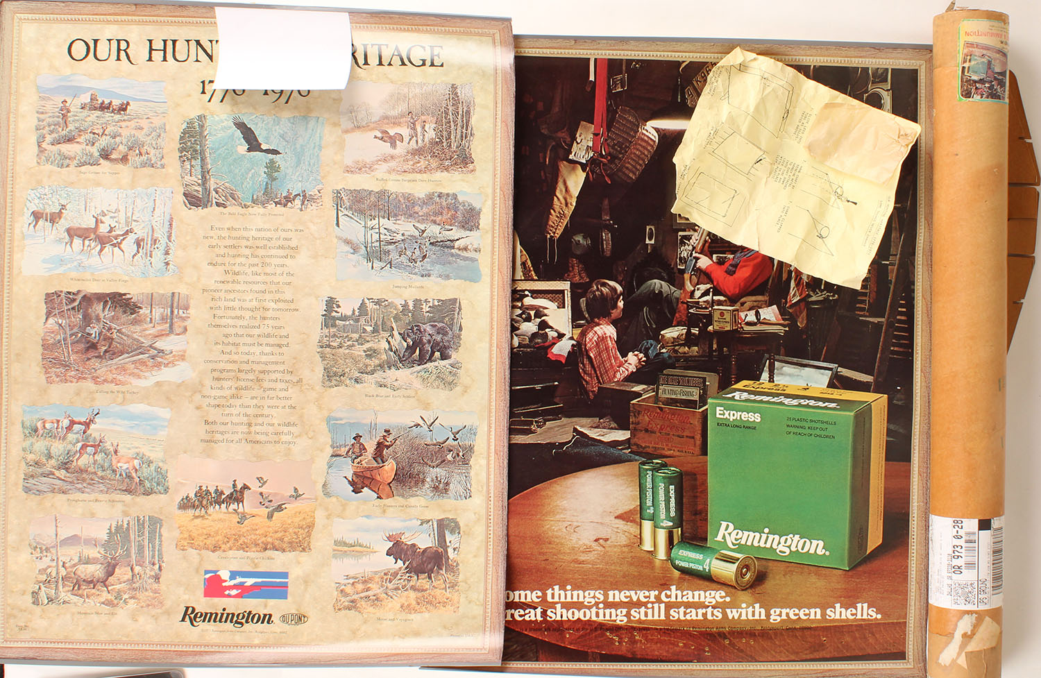 Lot of 2 Remington posters in original shipping tube, 20'' x 30'' both have metal bands & brass hanger. Grade: Excellent - Value: 20 to 100