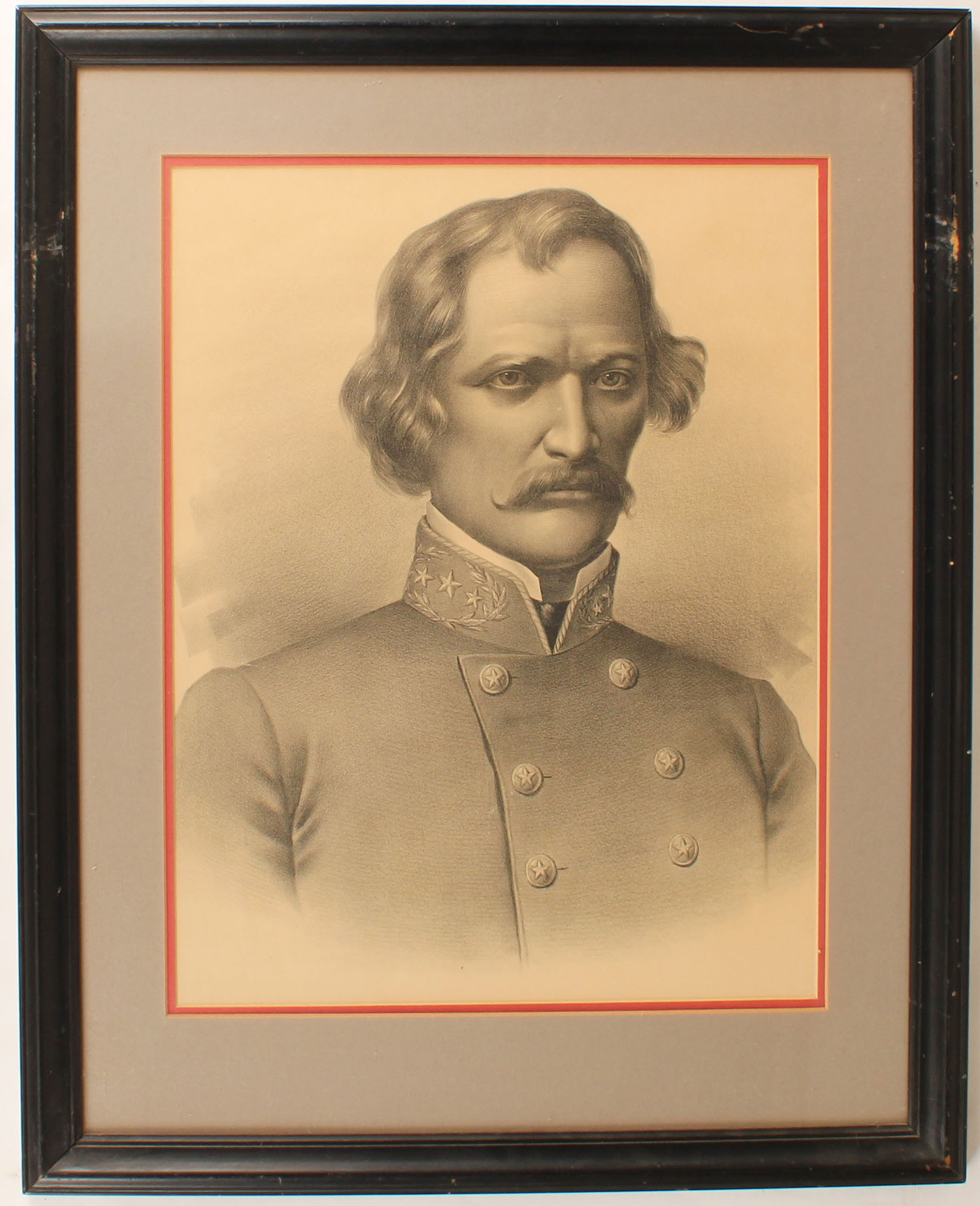 Early print of a Gen. Albert Sidney Johnson, served as a general in three different armies: the Texian Army, the United States Army, and the Confederate States Army, very detailed, 17'' x 22'', framed & matted. Grade: Excellent ++ - Value: 50 to 250