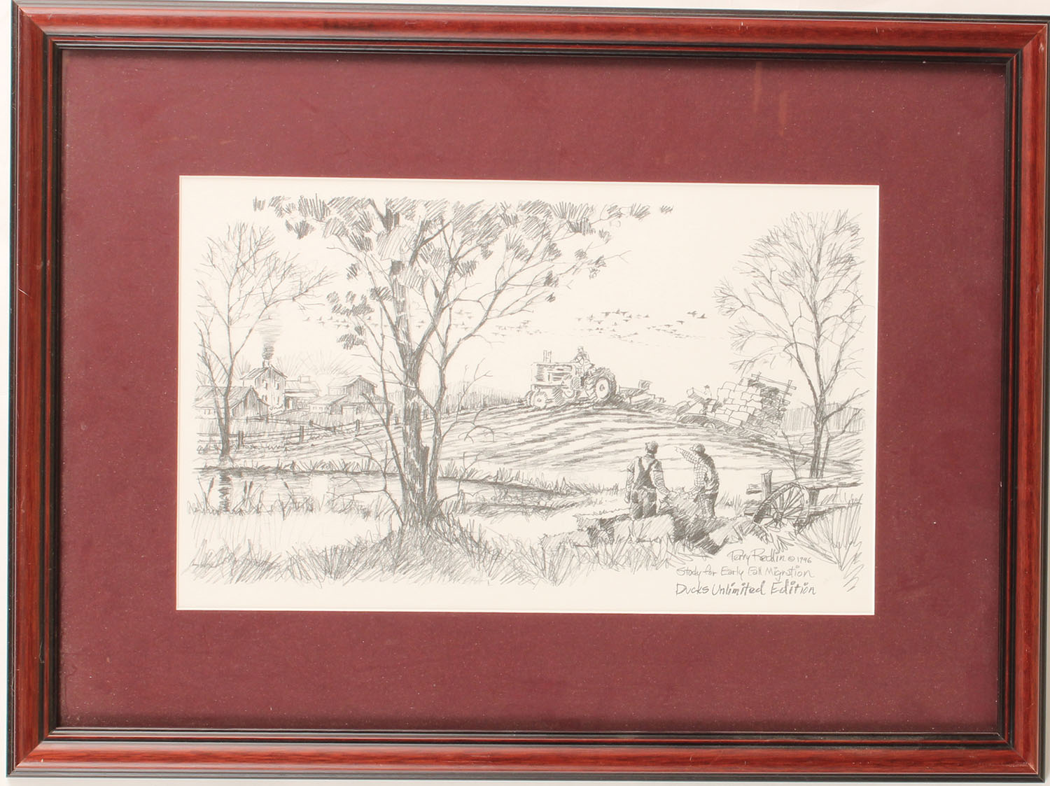 Terry Redlin pencil drawing ''Study for Early Fall Migration'', 1996, 13'' x 8'', framed. Grade: Excellent ++ - Value: 50 to 250