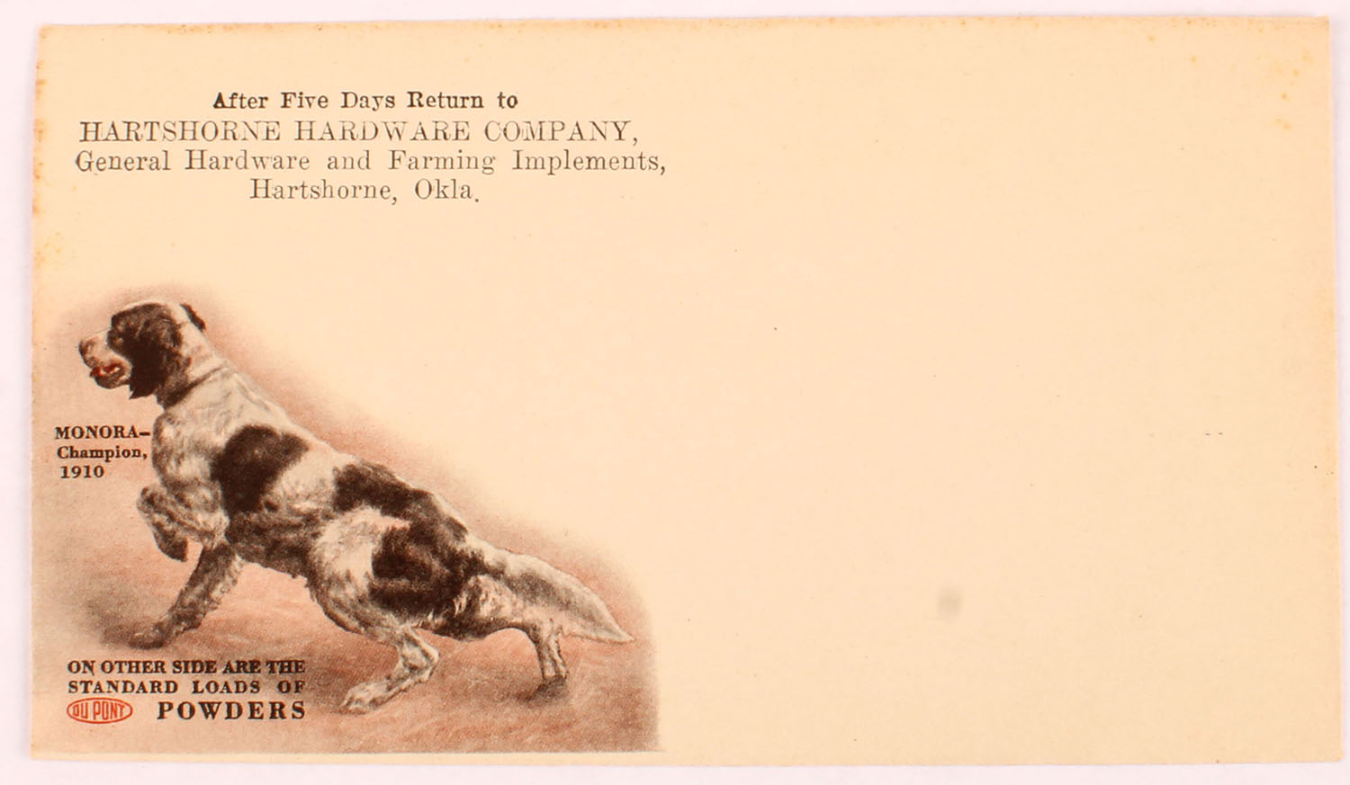 Dupont Powders Envelope, unused, full color image of MONORA Champion field trial dog. Grade: Excellent ++ - Value: 30 to 100