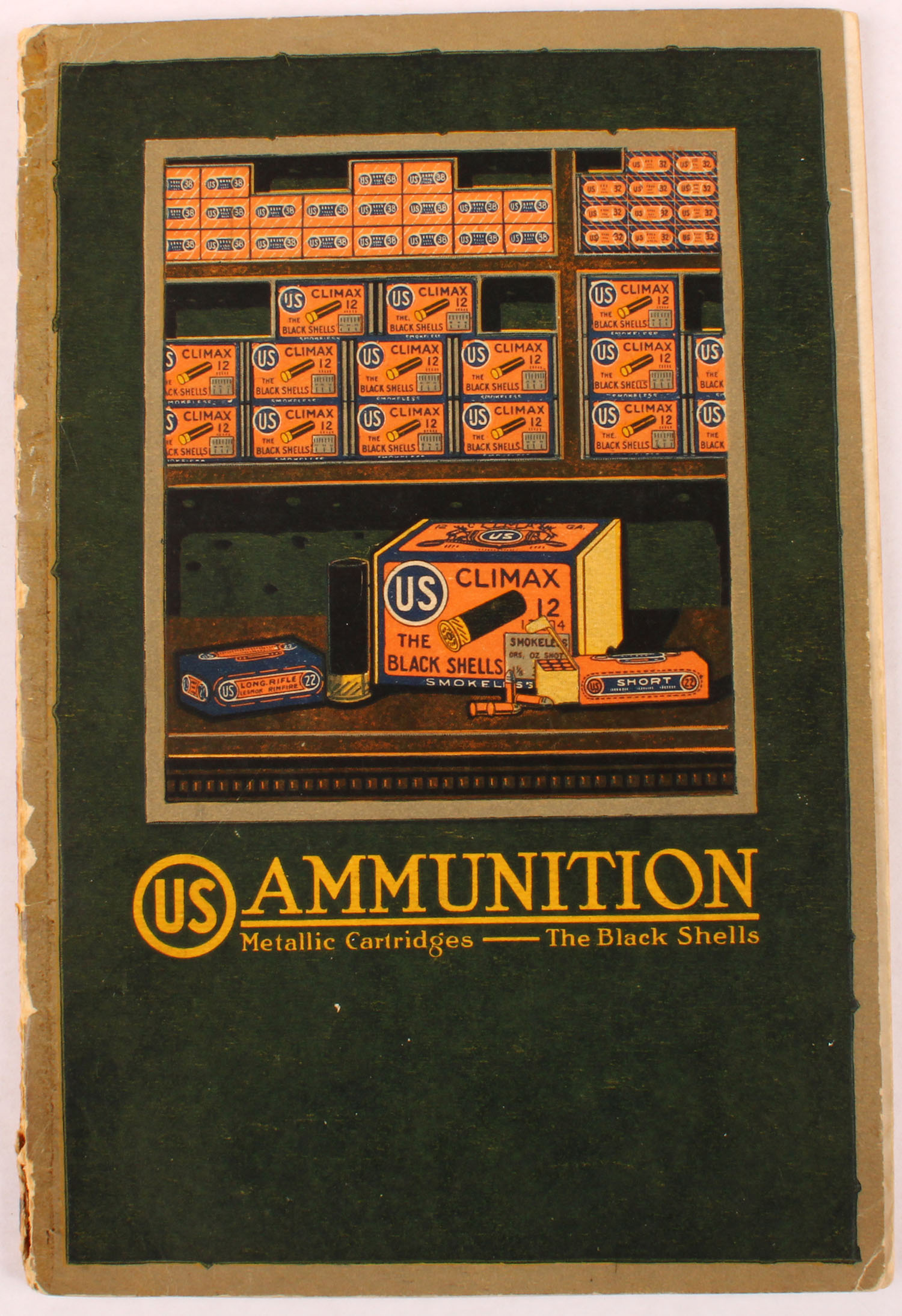 1917 U.S. Cart Co. Full Line Catalog, No. 61, every cartridge is in full color & appears to be life size, many cut-a-way shot shells, 80 pages, 6'' x 9'', front cover has been taped back on from the inside. Grade: Very Good - Value: 10 to 100