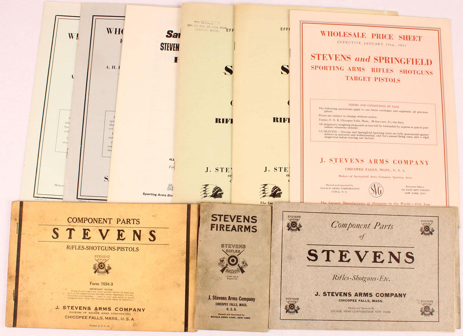 Lot of 9 Stevens price list. Grade: Excellent - Value: 2 to 50