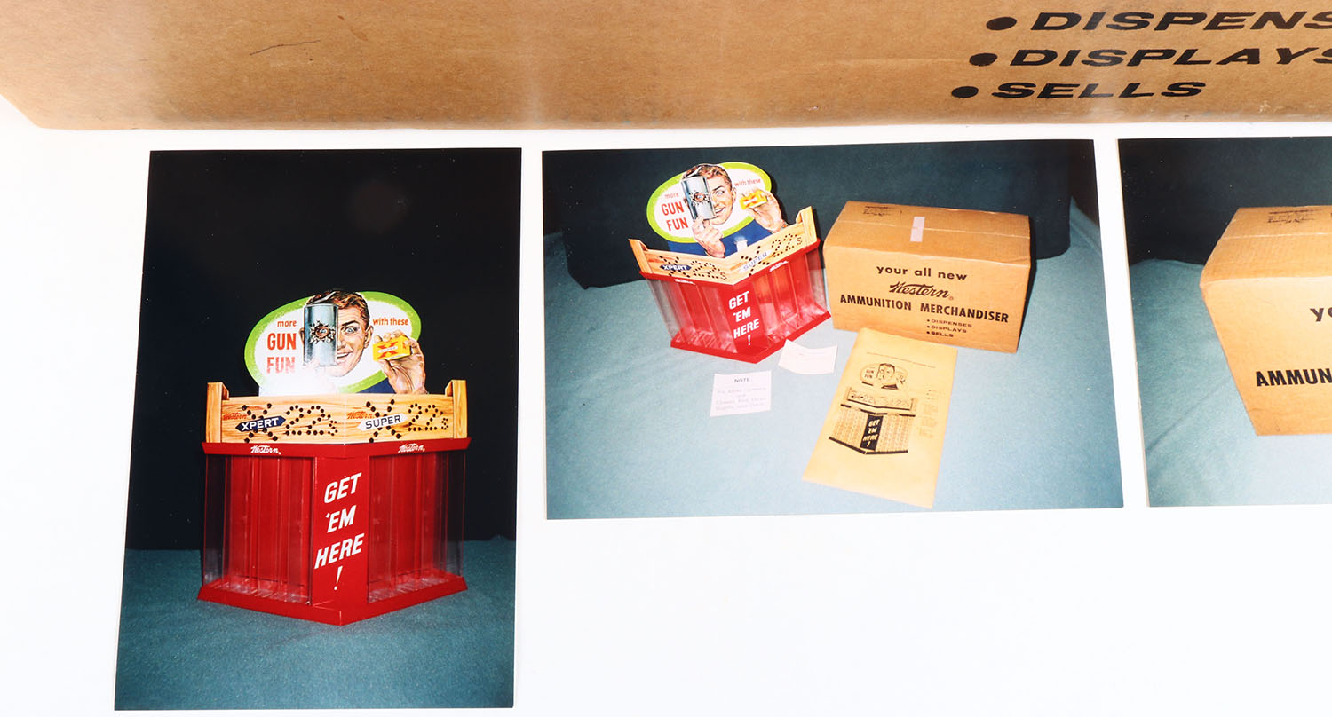 RARE Western SUPER-X & XPERT .22 3D display, SEALED IN ORGINAL BOX WITH MINT DIECUT ON TOP, the photos are used from an other box that we opened, ''GET 'EM HERE!'', two sided display holds many .22's for your collection, the diecut on top pictures a man holding a tin can with a large hole in it plus a .22 box, Grade: MINT - Value: 1000 to 2000