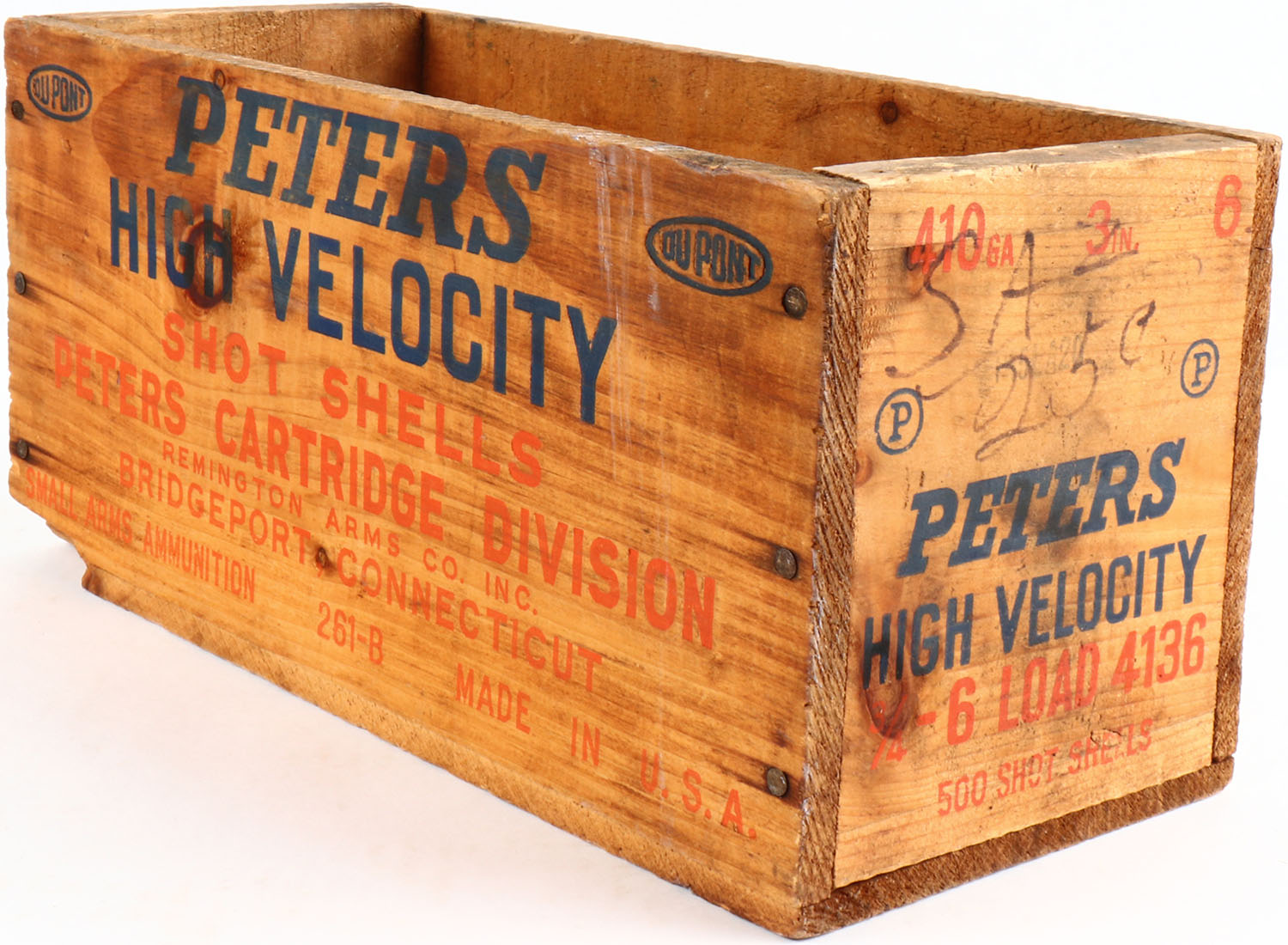 Peters High Velocity 410 ga., 6, nail construction, orange and blue print is solid, all solid. Grade: Excellent - Value: 20 to 100