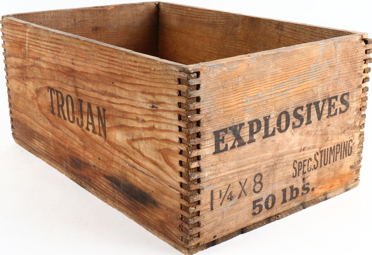 Wood crate explosive powder. Some age soiling. Grade: Very Good ++ - Value: 4 to 50
