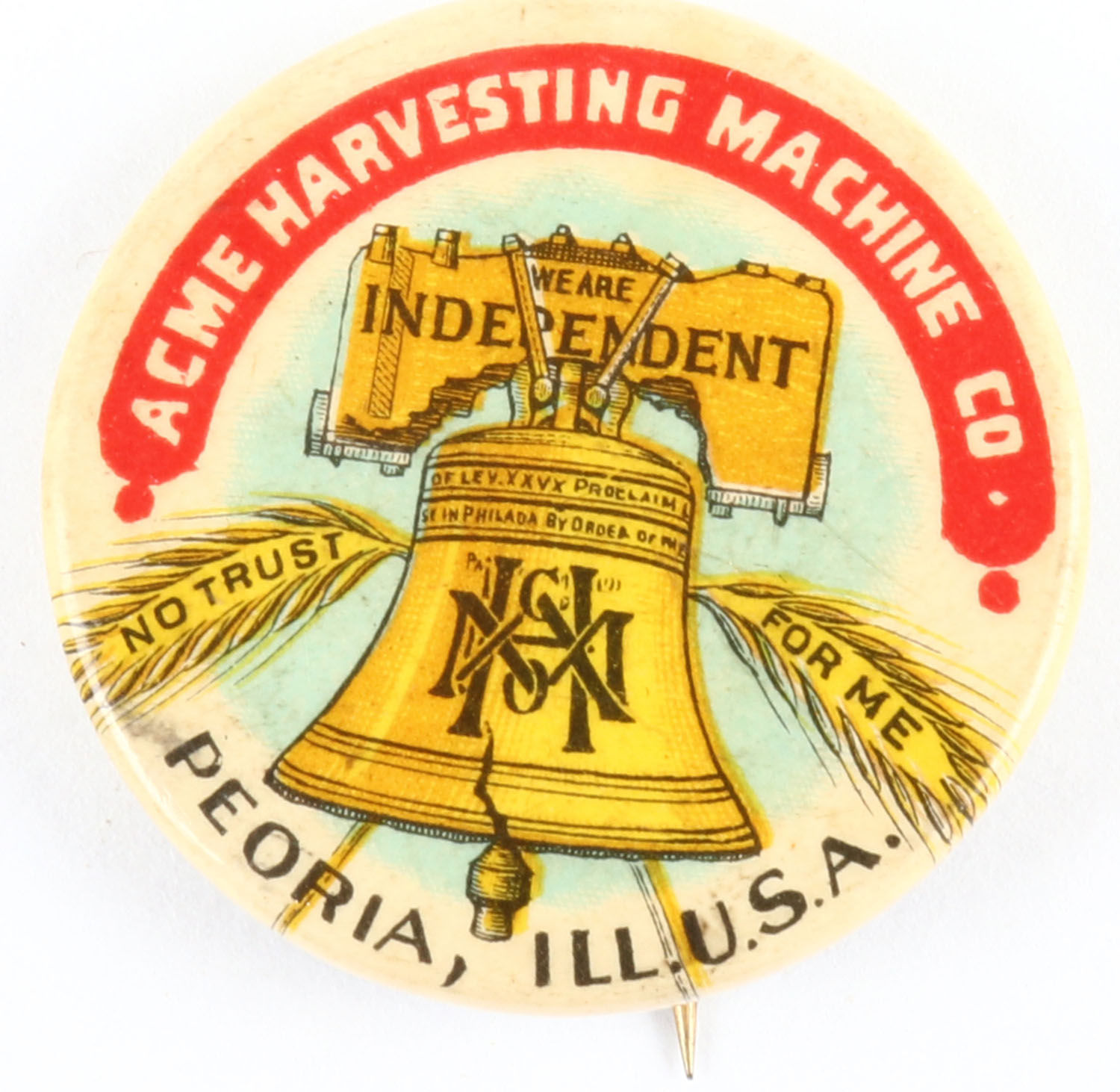 Acme Harvesting machines pinback, pin and paper back are very b...