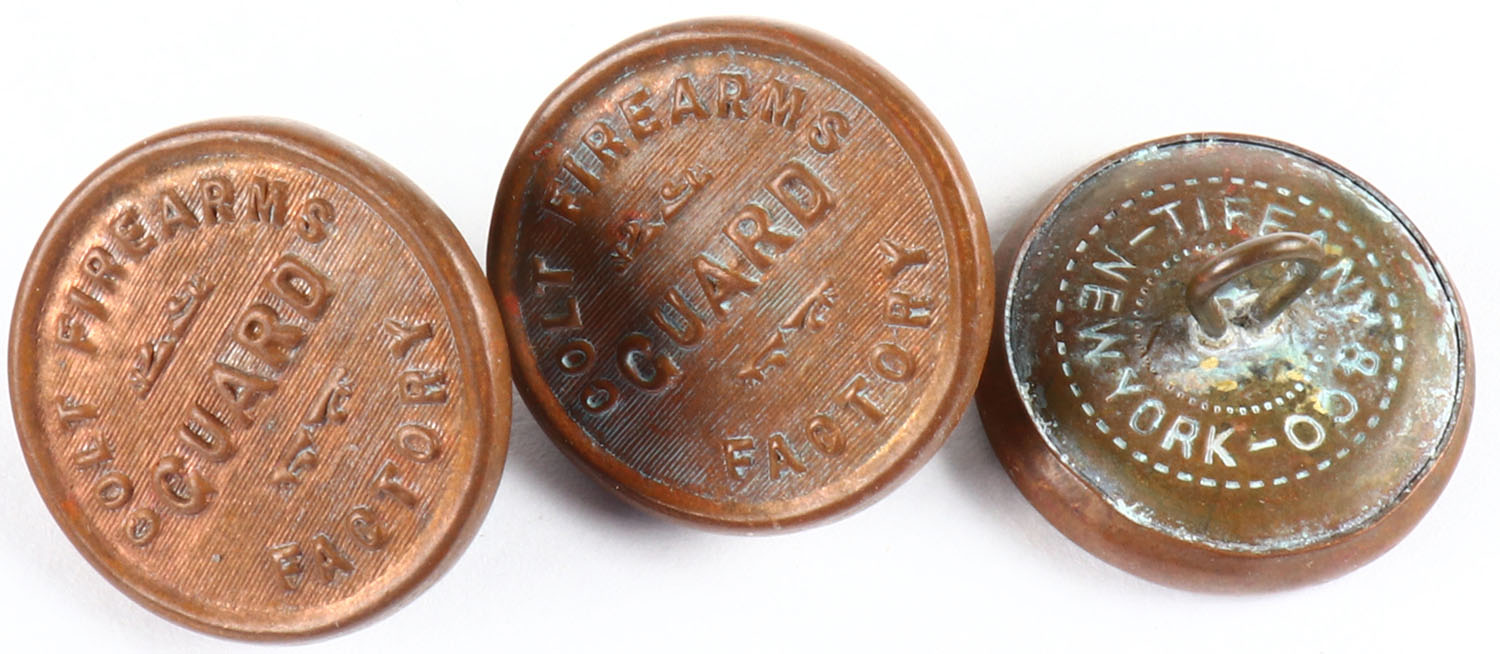 Lot of 3 Colt Firearms Factory Guards buttons. Grade: Excellent - Value: 20 to 80