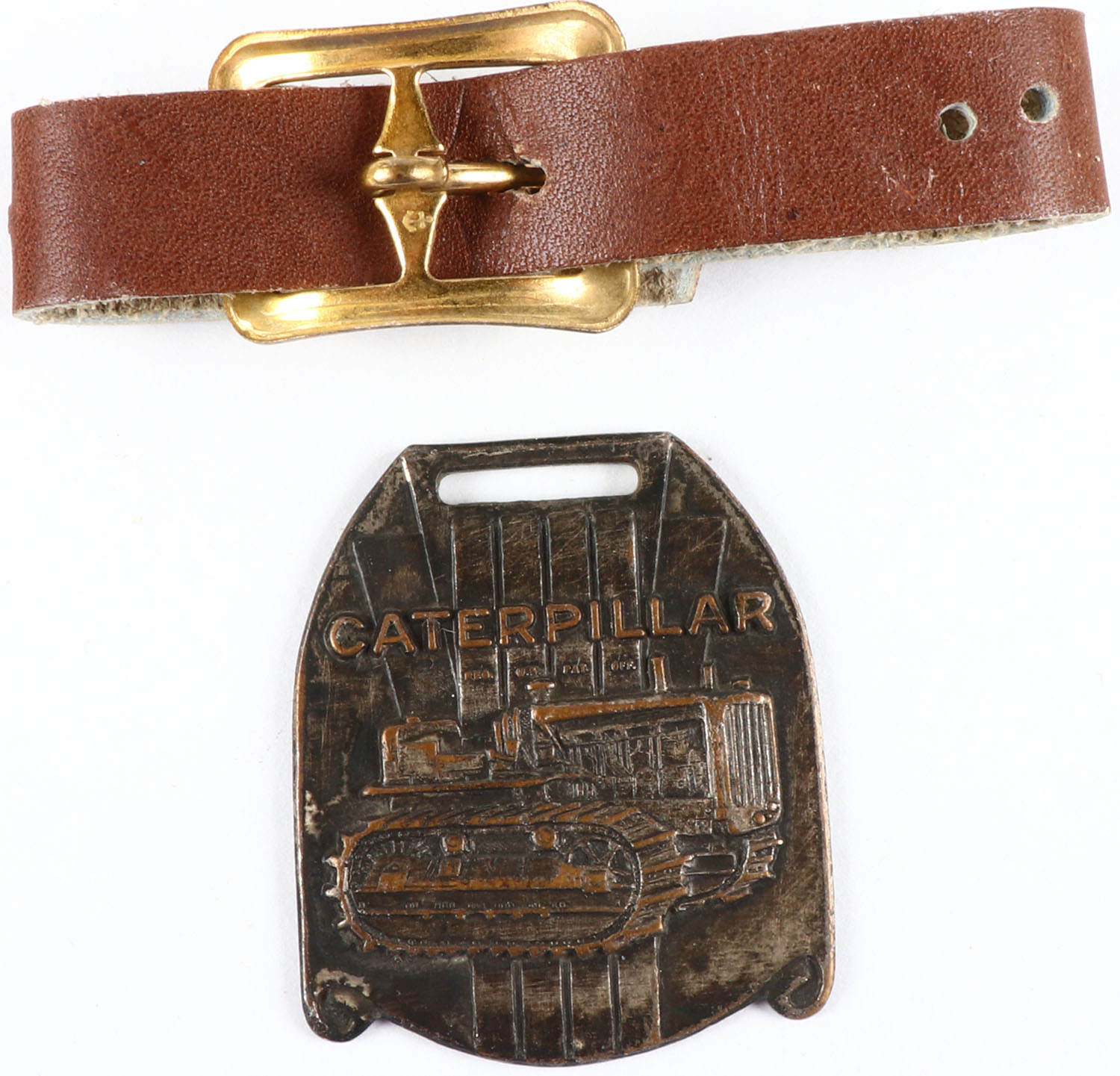 Caterpillar tractor watch fob, has age soiling. Grade: Very Good ++ - Value: 20 to 60