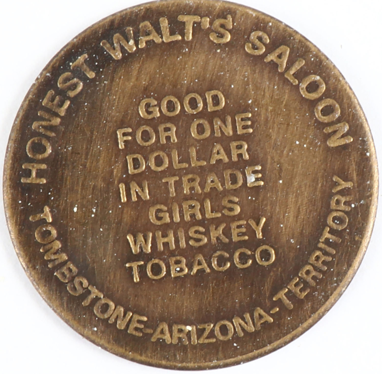Double sided Brothel Token, Honest Walt's Saloon, 1 1/2'' diameter. Grade: Excellent - Value: 10 to 40