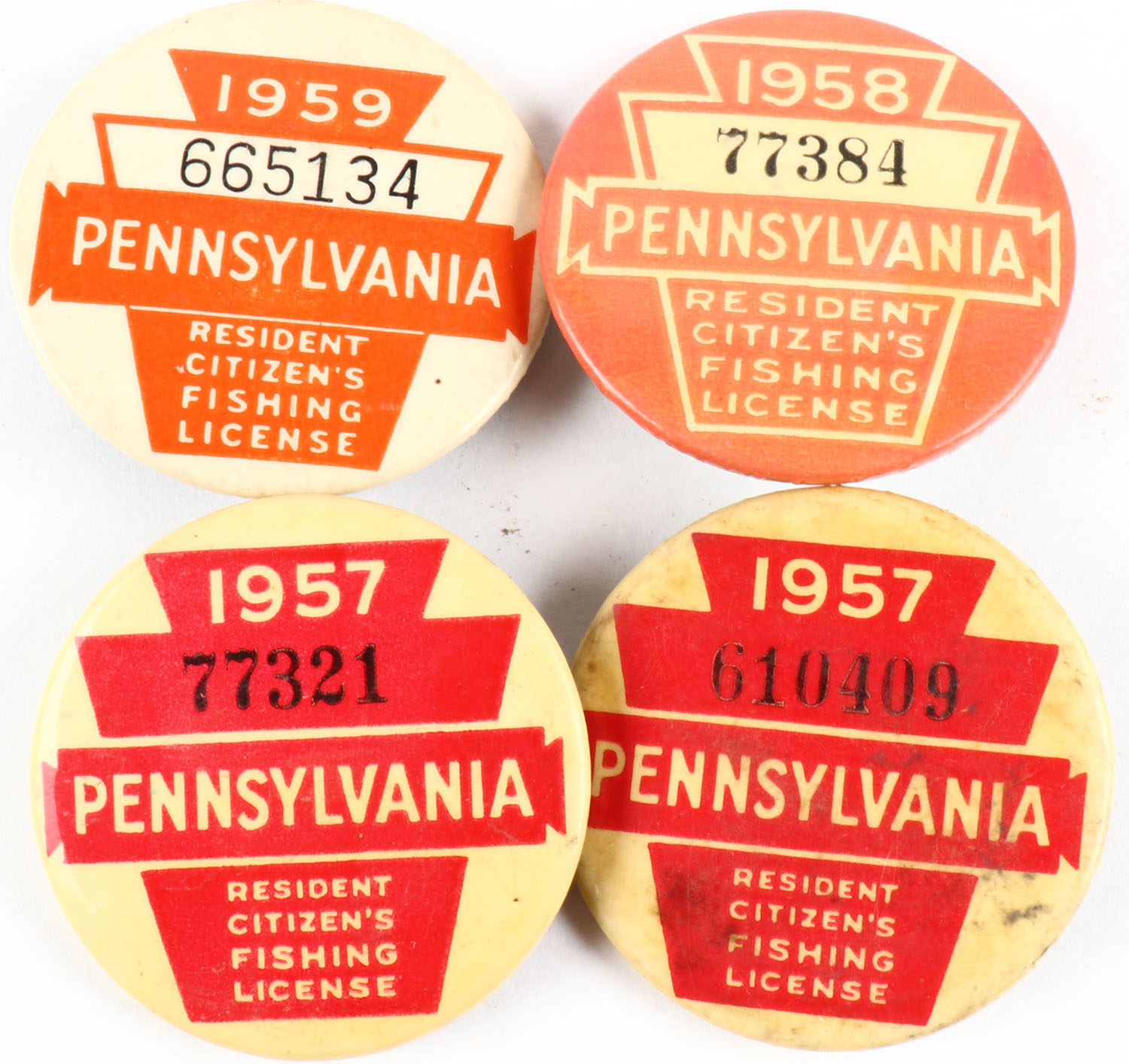 Lot of 4 Pennsylvania fishing licenses. Grade: Excellent - Value: 10 to 100