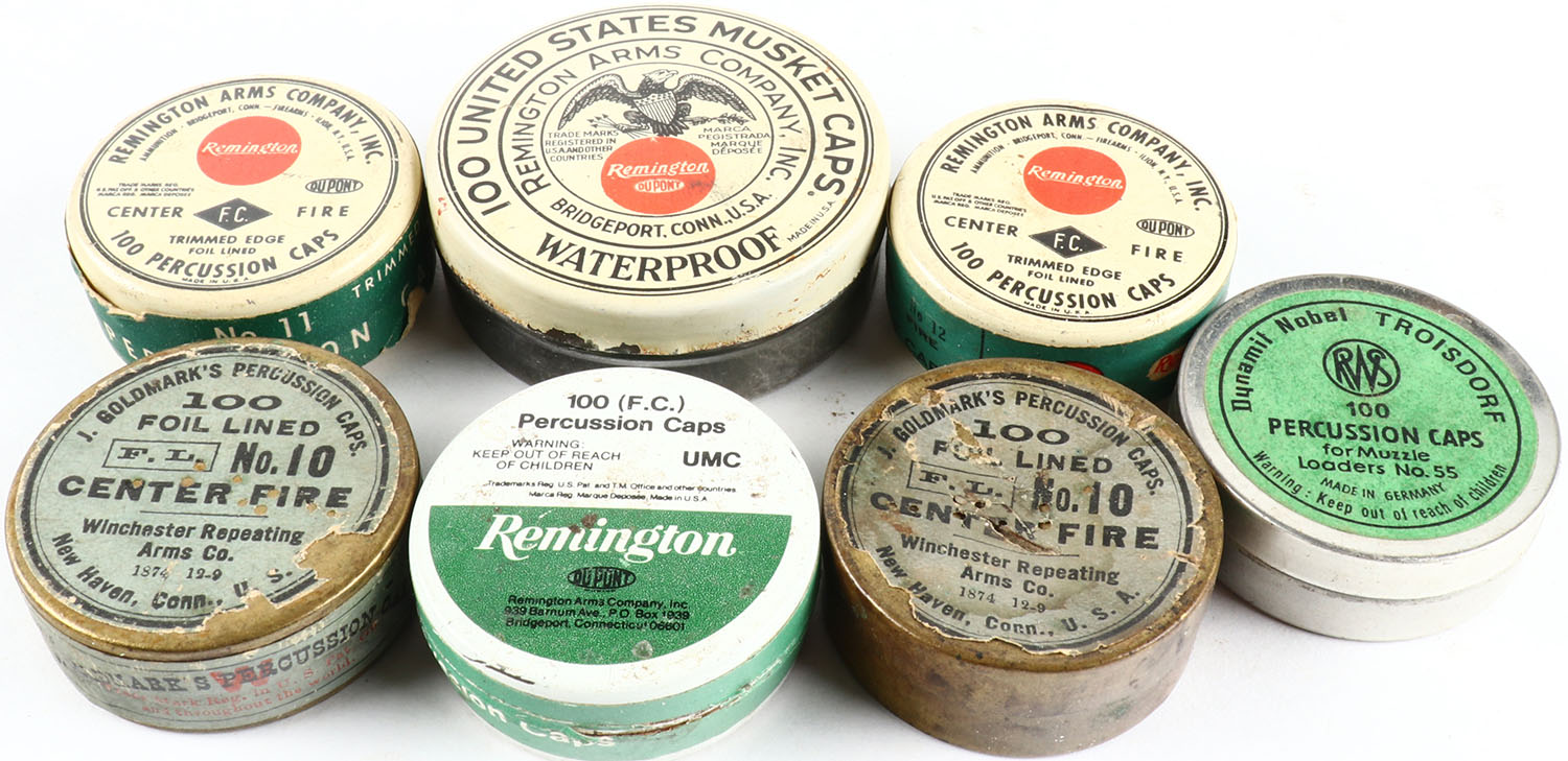 Lot of 7 percussion caps, all partial. Grade: Very Good - Value: 6 to 60