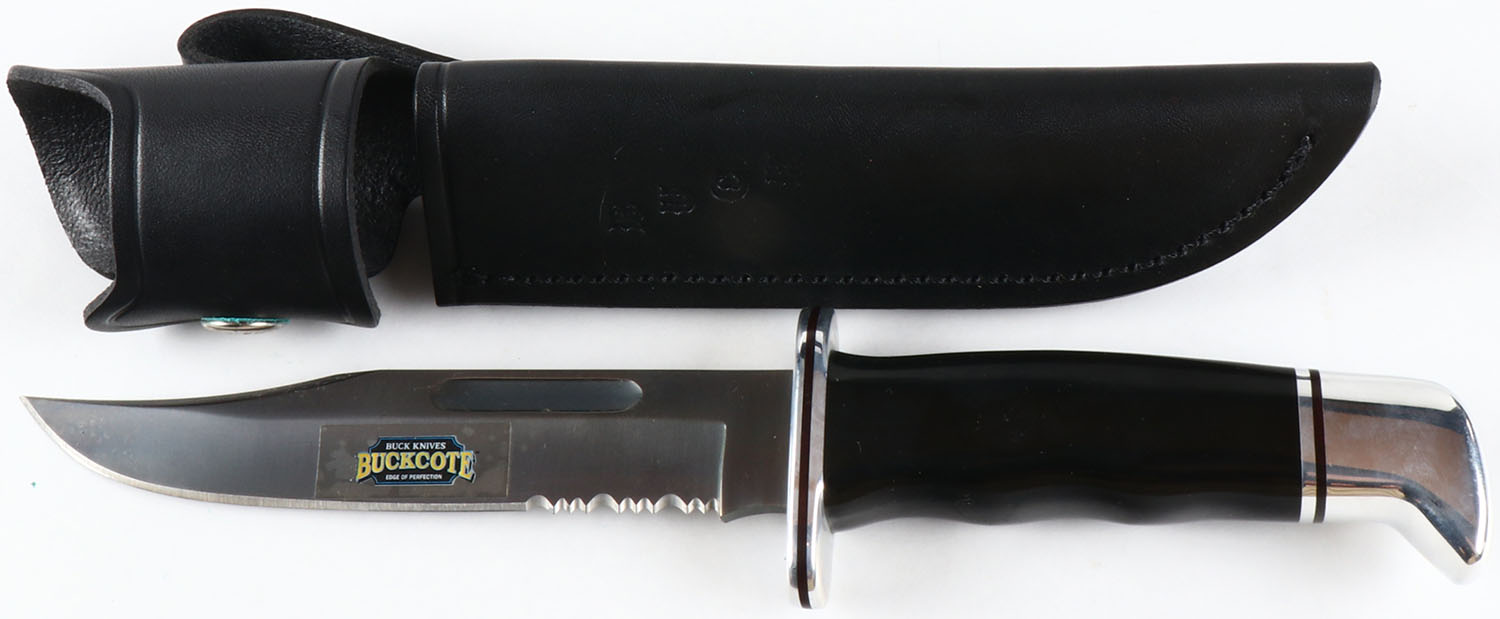 Buck knife, buckcote, 5'' blade, in leather sheath. Grade: MINT - Value: 16 to 60