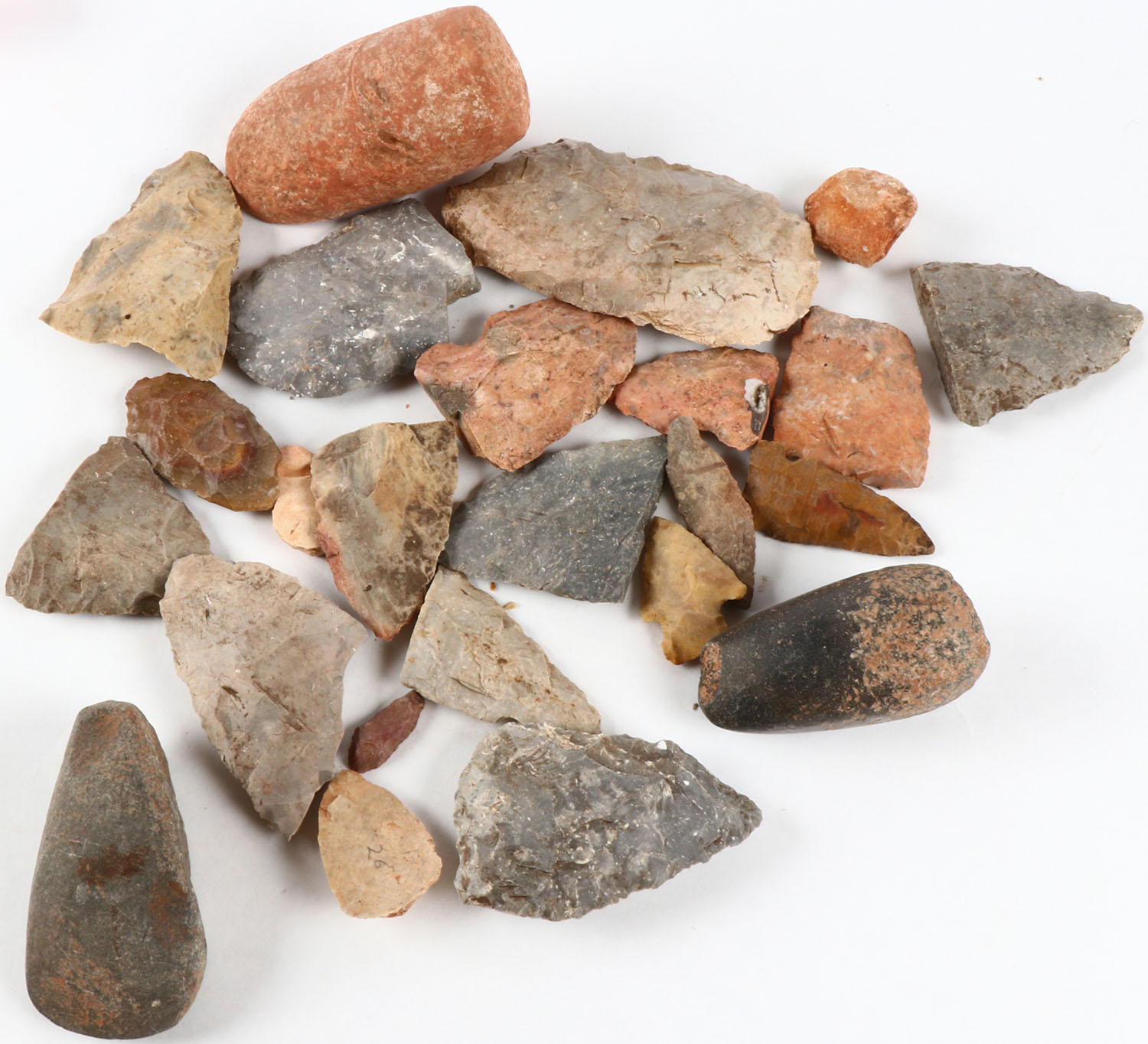 Very large lot of stones and spear tips. Grade: Excellent - Value: 40 to 150