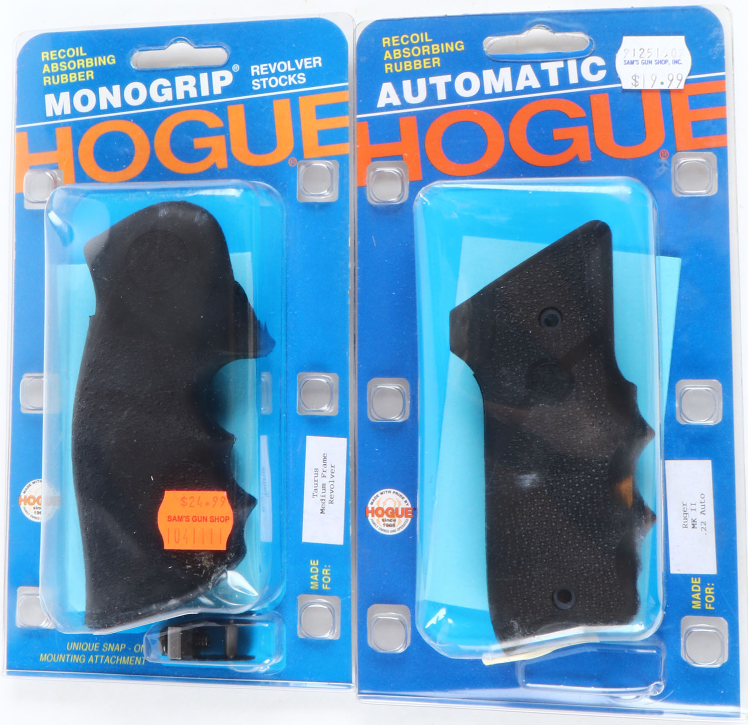 Lot of 2 Hogue rubber pistol grips, for Taurus Medium Frame revolver and Ruger MK11 .22 Auto. Grade: Excellent ++ - Value: 10 to 60