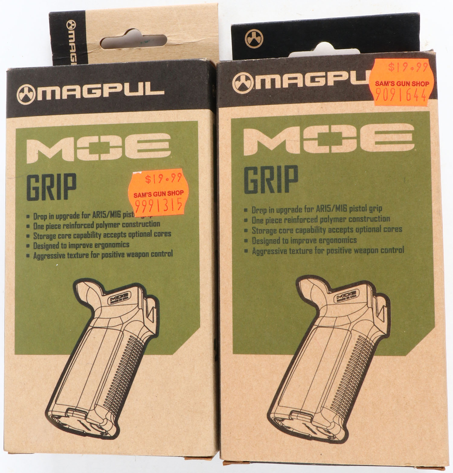 Lot of 2 Magpul MOE grips, in original boxes. Grade: Excellent - Value: 16 to 60