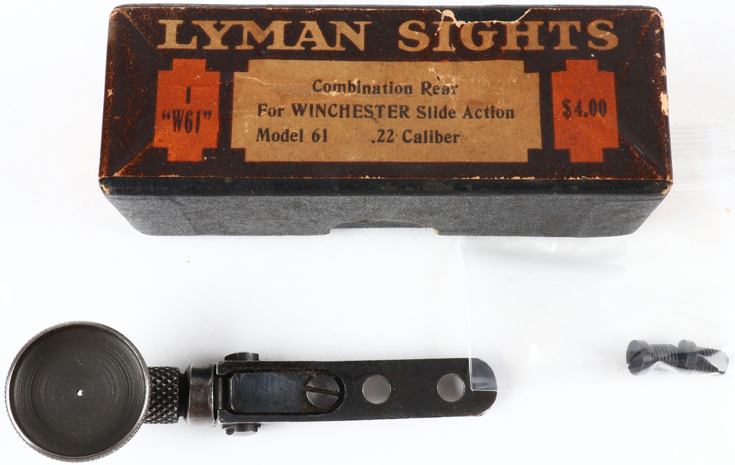 Lyman Tang sight W61, in orginal box with screws & direction sheet. Grade: Excellent - Value: 100 to 500