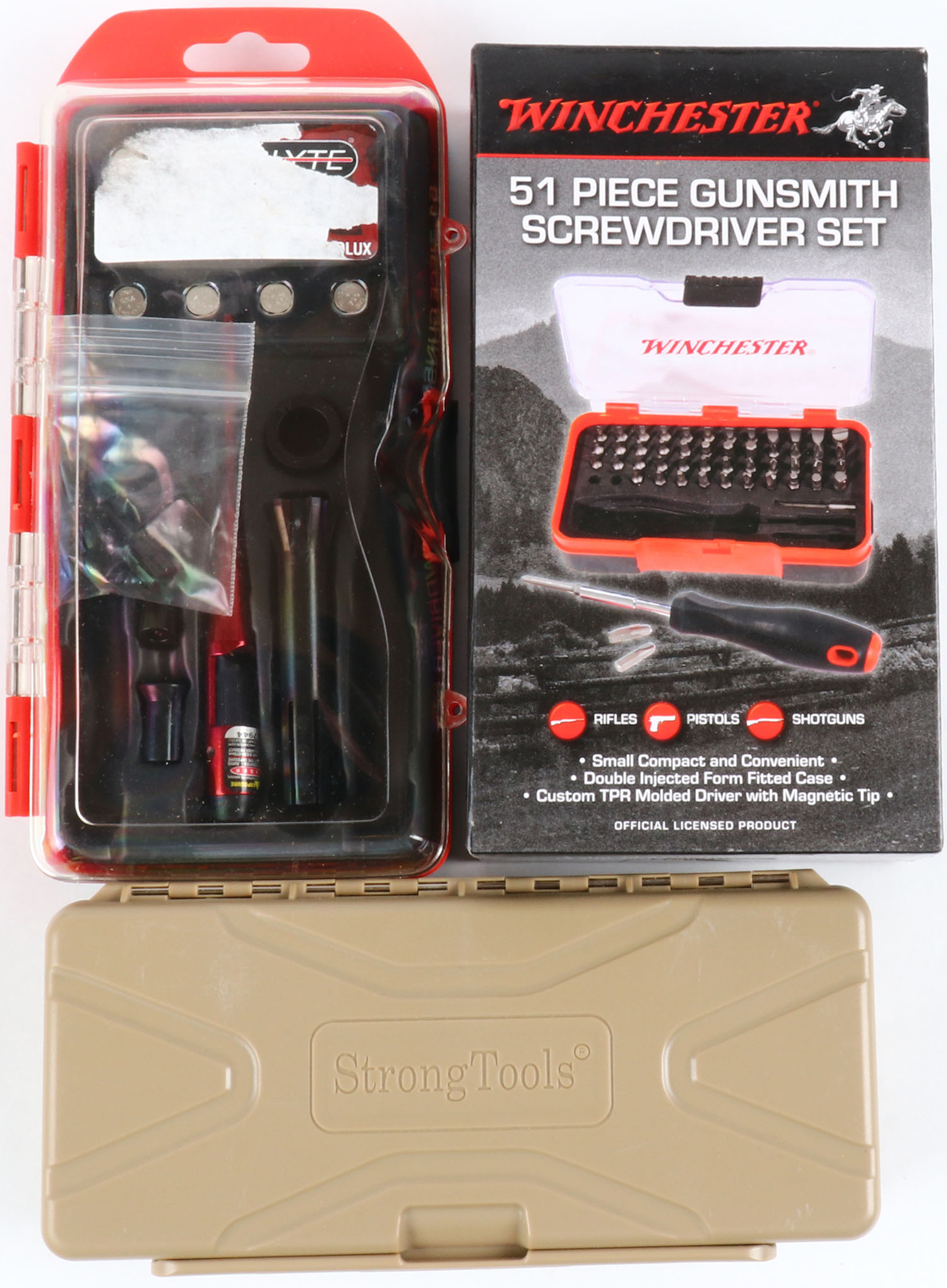 Lot of 3, a Winchester 51 piece gunsmith screwdriver set, and 2 Boresight laser lights all in case, with all the extra accessories. Grade: Excellent ++ - Value: 10 to 80