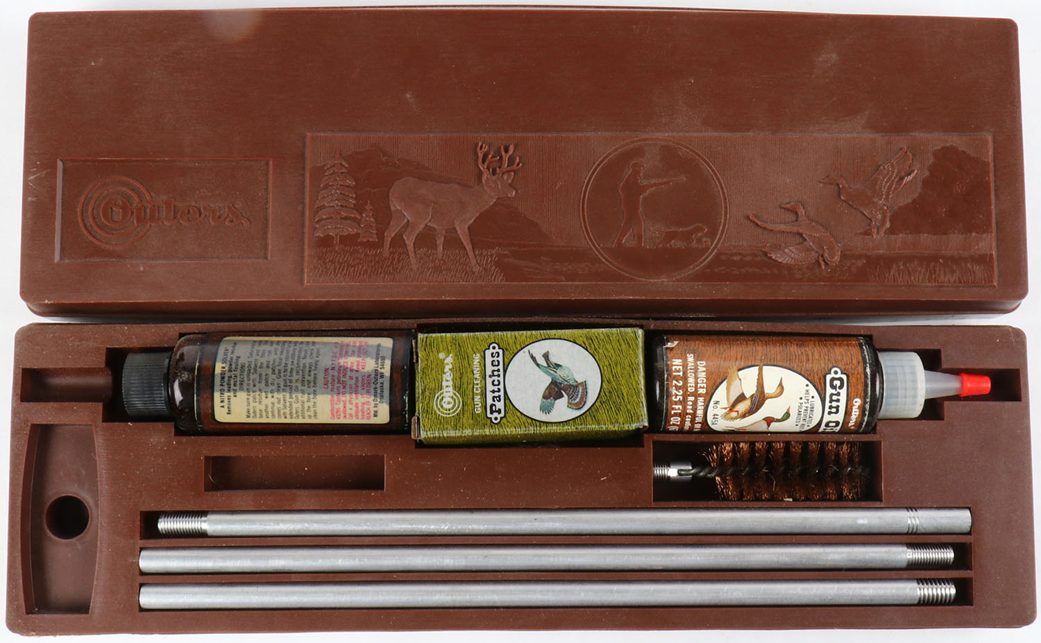 Outer's Shotgun cleaning kit, 12 GA, has oil & solvent bottles. Grade: Excellent - Value: 2 to 30