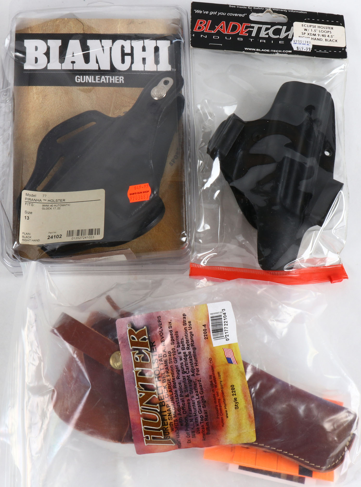 Lot of 3 NIB holsters, Bianchi, Hunter & Bladetech. Grade: MINT - Value: 10 to 60