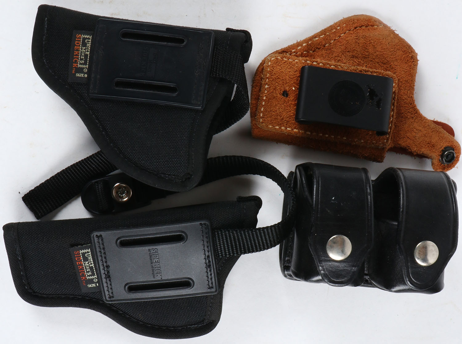 Lot of 4 holsters for guns or ammo. Grade: Excellent ++ - Value: 10 to 40