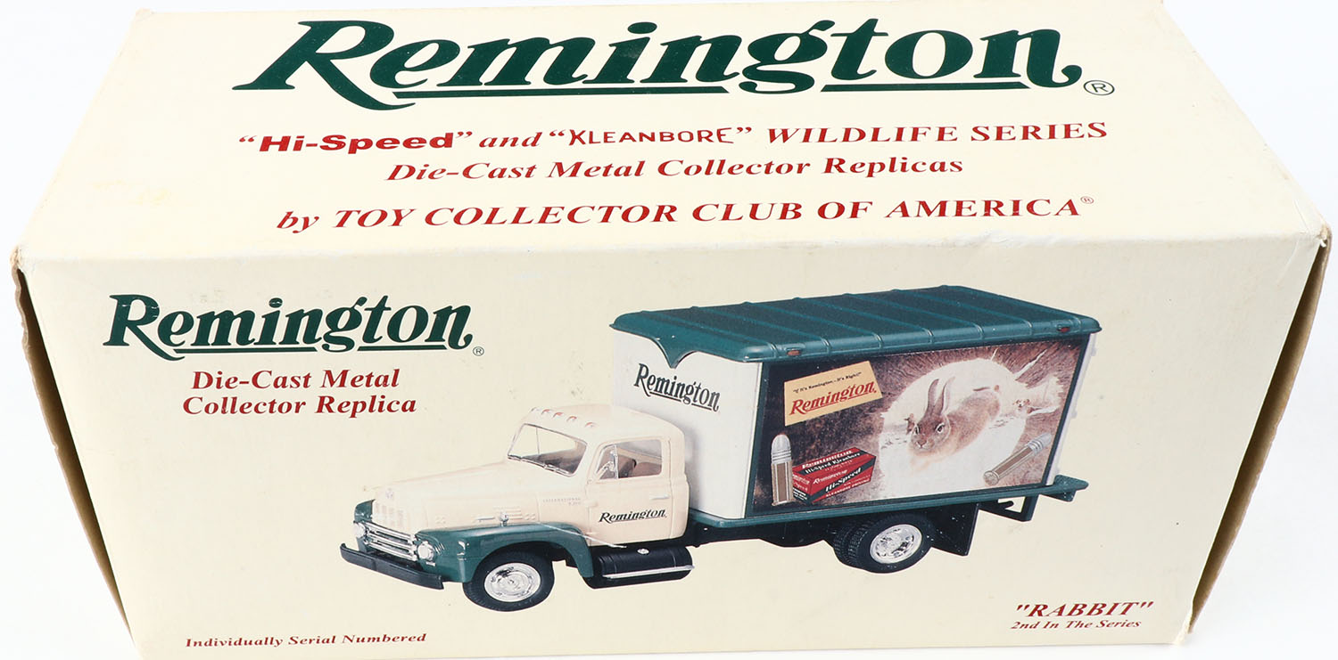 Remington truck, Rabbit, Wildlife Series, 2nd truck in the series, in original box, NIB, box is lightly faded, very bright and clean. Grade: Excellent - Value: 10 to 50