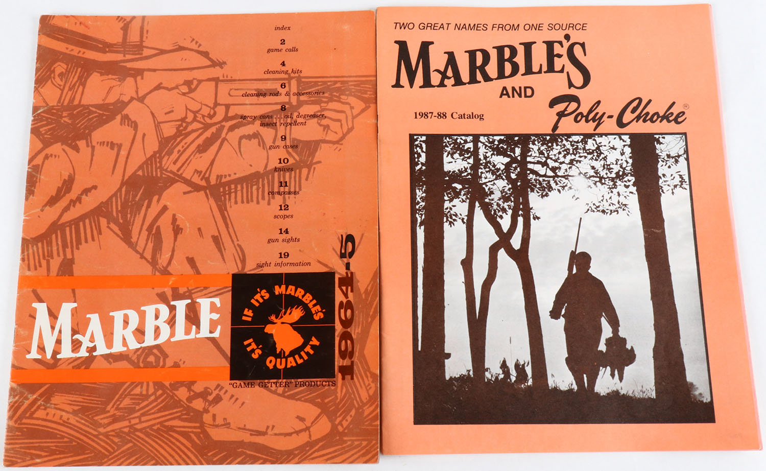 Lot of 2 Marbles catalogs, 1964 & 1987, 8 1/2'' x 11'', all items are pictured. Grade: Excellent - Value: 2 to 50