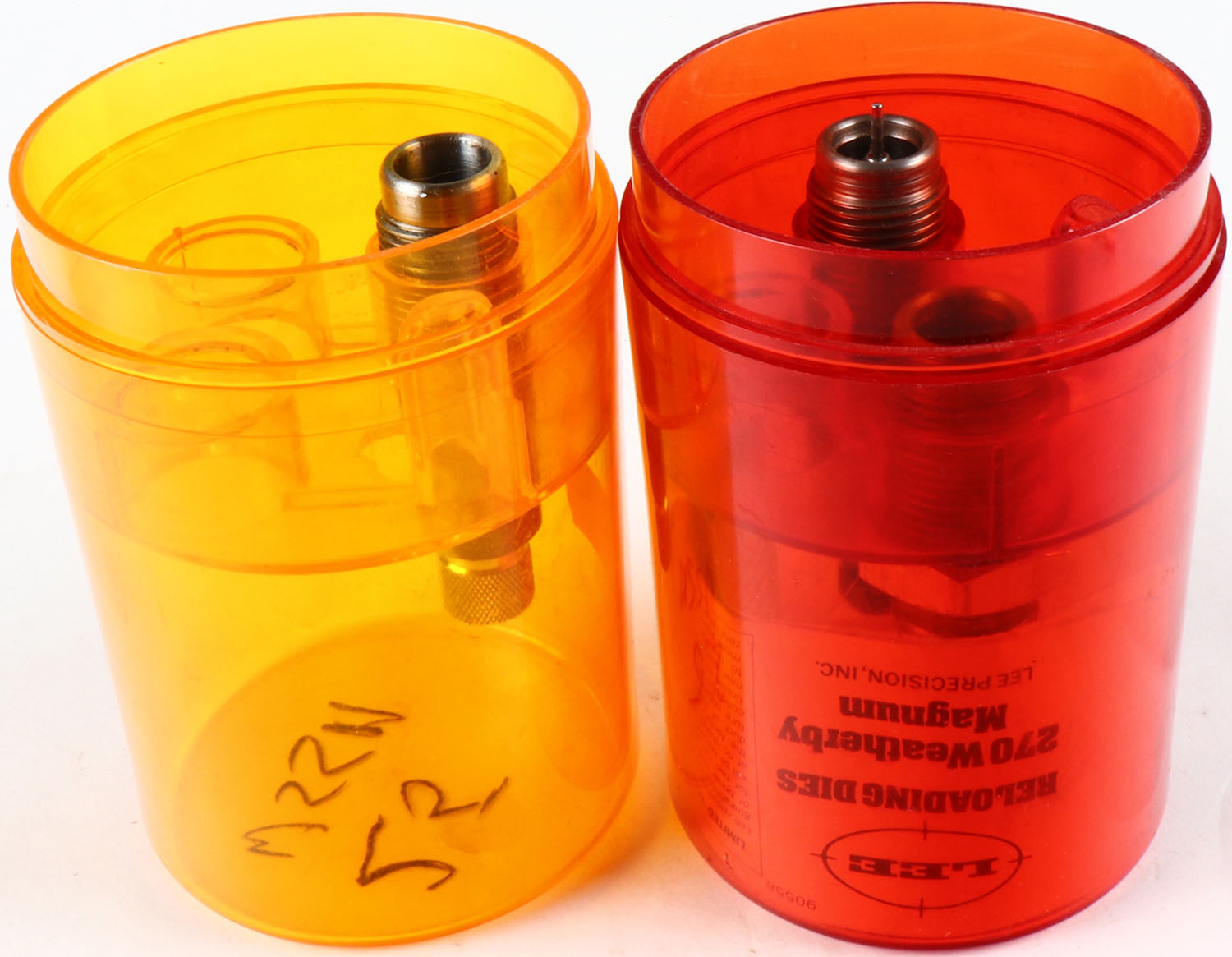 Lot of 2 Lee reloading dies, .25 WSSM, .270 Weatherby Mag., in original box. Grade: Excellent - Value: 2 to 50