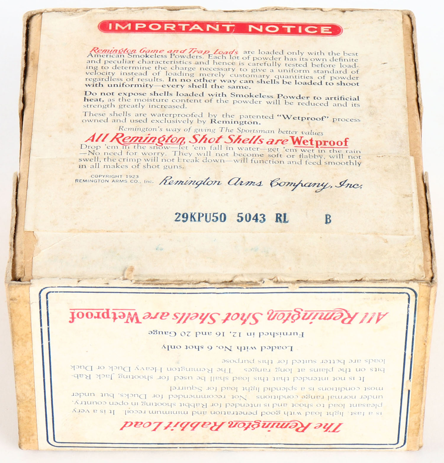 Remington UMC Nitro Club, GAME LOADS, 12ga, 2pc., Empty, shot size 6 CH, buff box with sunburst logo and a rabbit on side, box is solid with very good colors & even coat of soiling. Grade: Very Good ++ - Value: 80 to 300