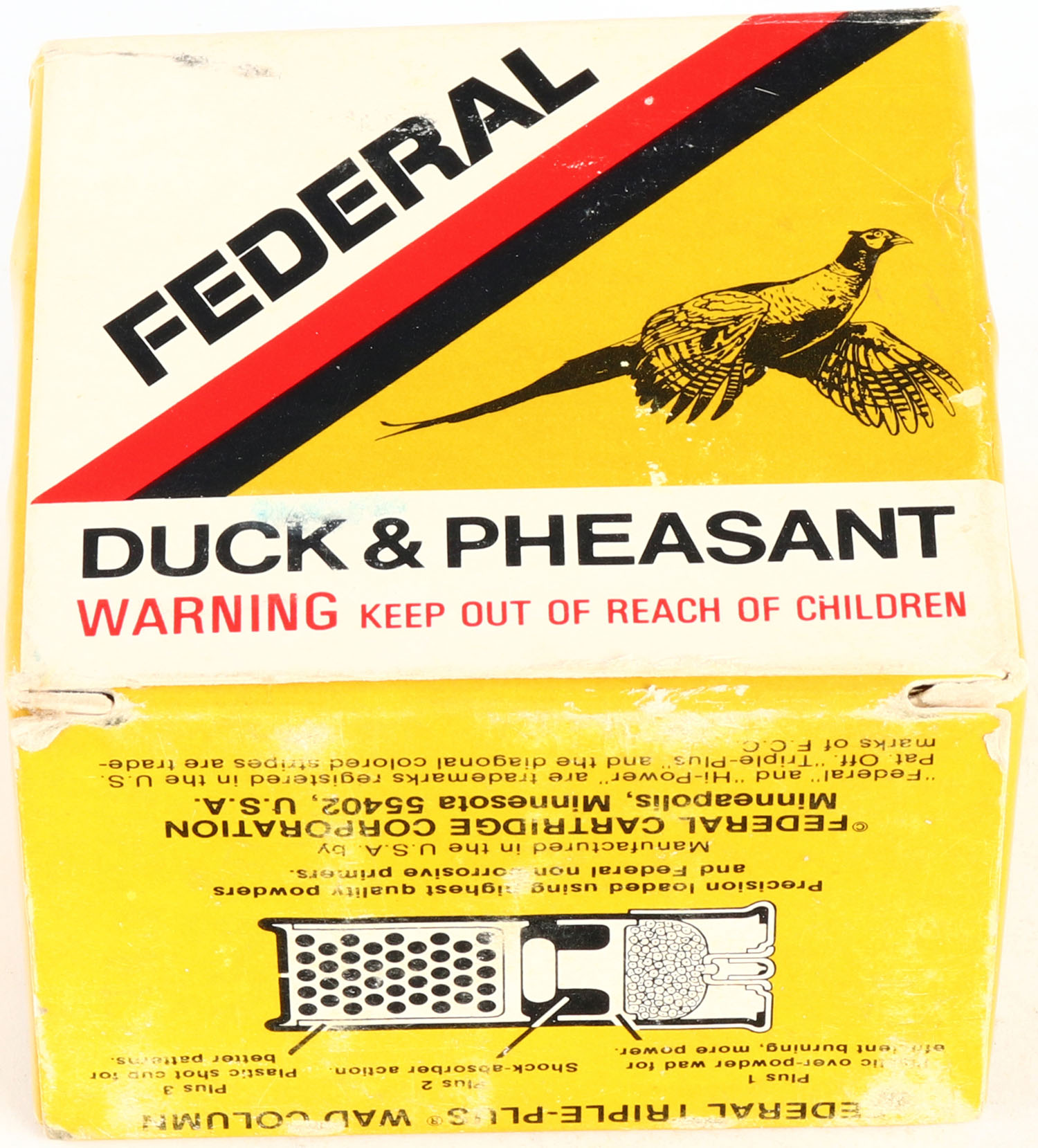 Federal, Duck & Pheasant, 20ga., 2 3/4'', 1pc., Full, shot size 6, multi-colored box, box is solid, shells are excellent. Grade: Very Good ++ - Value: 10 to 30
