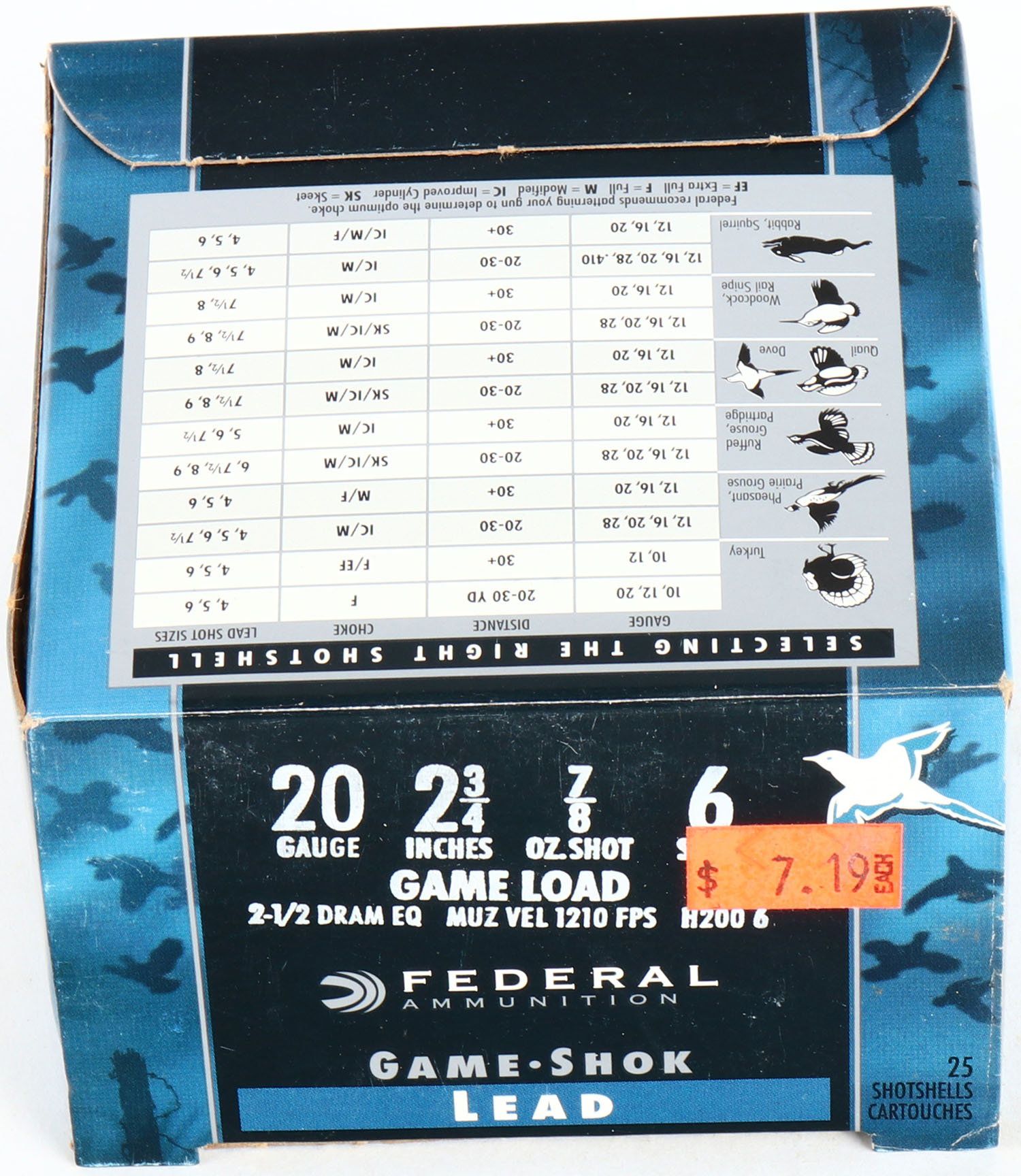 Federal, Game Shok, 20ga., 1pc., Full, shot size 6 Game Load, multi-colored box, box is solid, shells are excellent. Grade: Excellent - Value: 10 to 30
