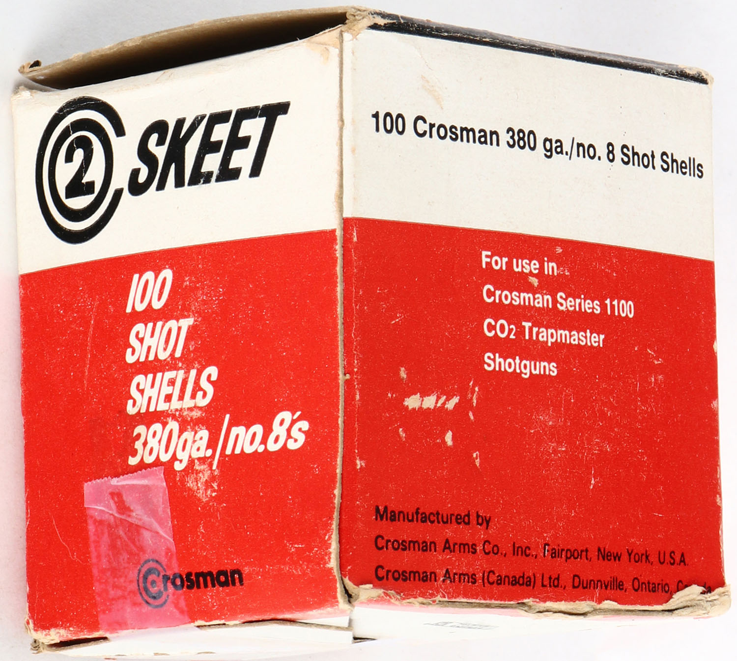 Crosman, 2 Skeet, 380ga., 1pc., Full, shot size No. 8's, box has tears, Shells are excellent. Grade: Very Good ++ - Value: 20 to 100
