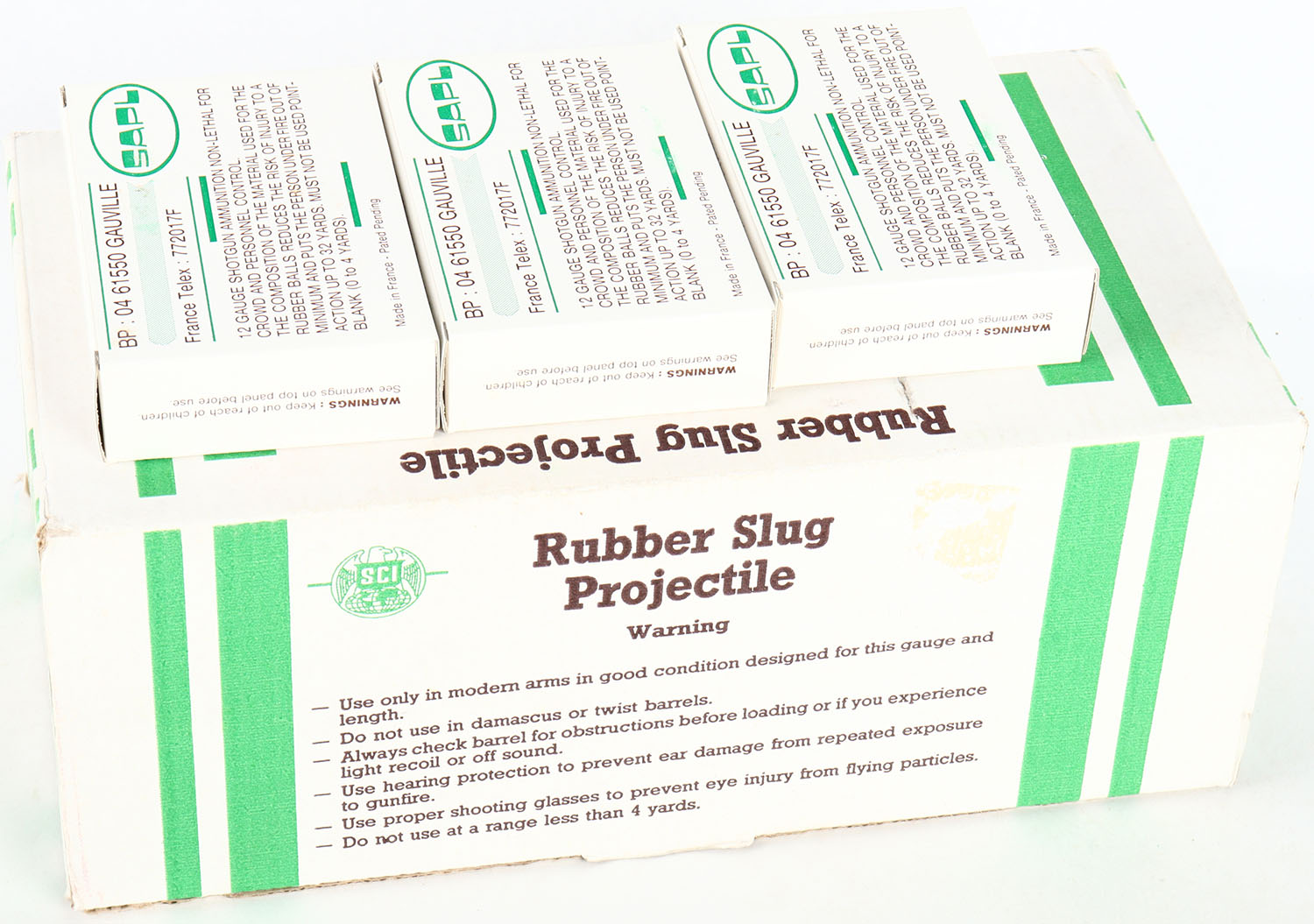 Lot of 18 full boxes (5 count), SCI, Exclusive U.S. Agents, 12ga., 1pc., Full, HARD RUBBER BALL, case box is mint & so are the inside boxes. Grade: MINT - Value: 100 to 300