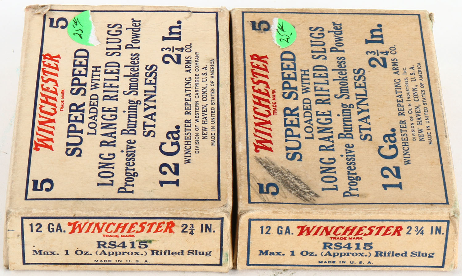 Lot of 2 Winchester, 10ga., 1pc., Appears Full, shot size 4 Buck, multi-colored box. Grade: Excellent - Value: 10 to 30