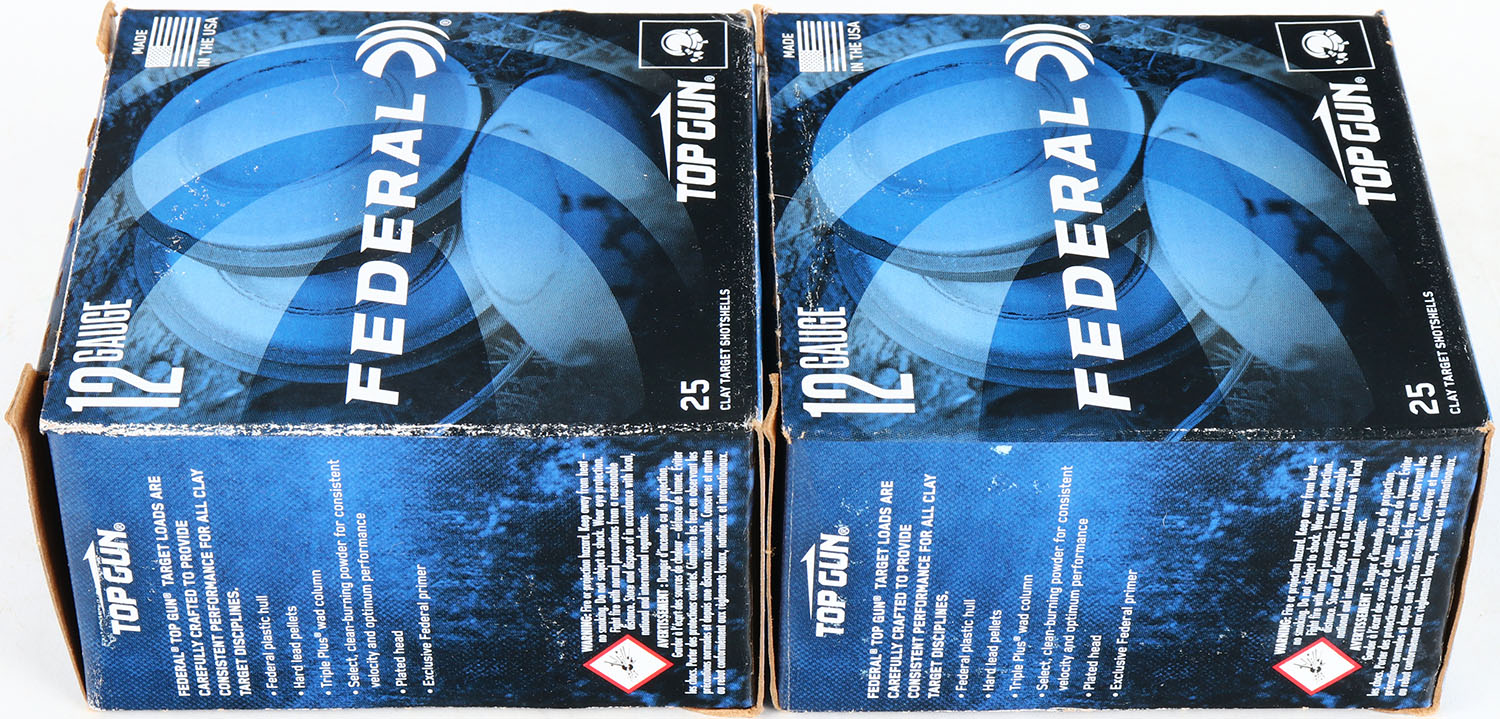 Lot of 2 Federal, 12ga., 1pc., Appears full, shot size 8, multi-colored box. Grade: Excellent - Value: 10 to 40