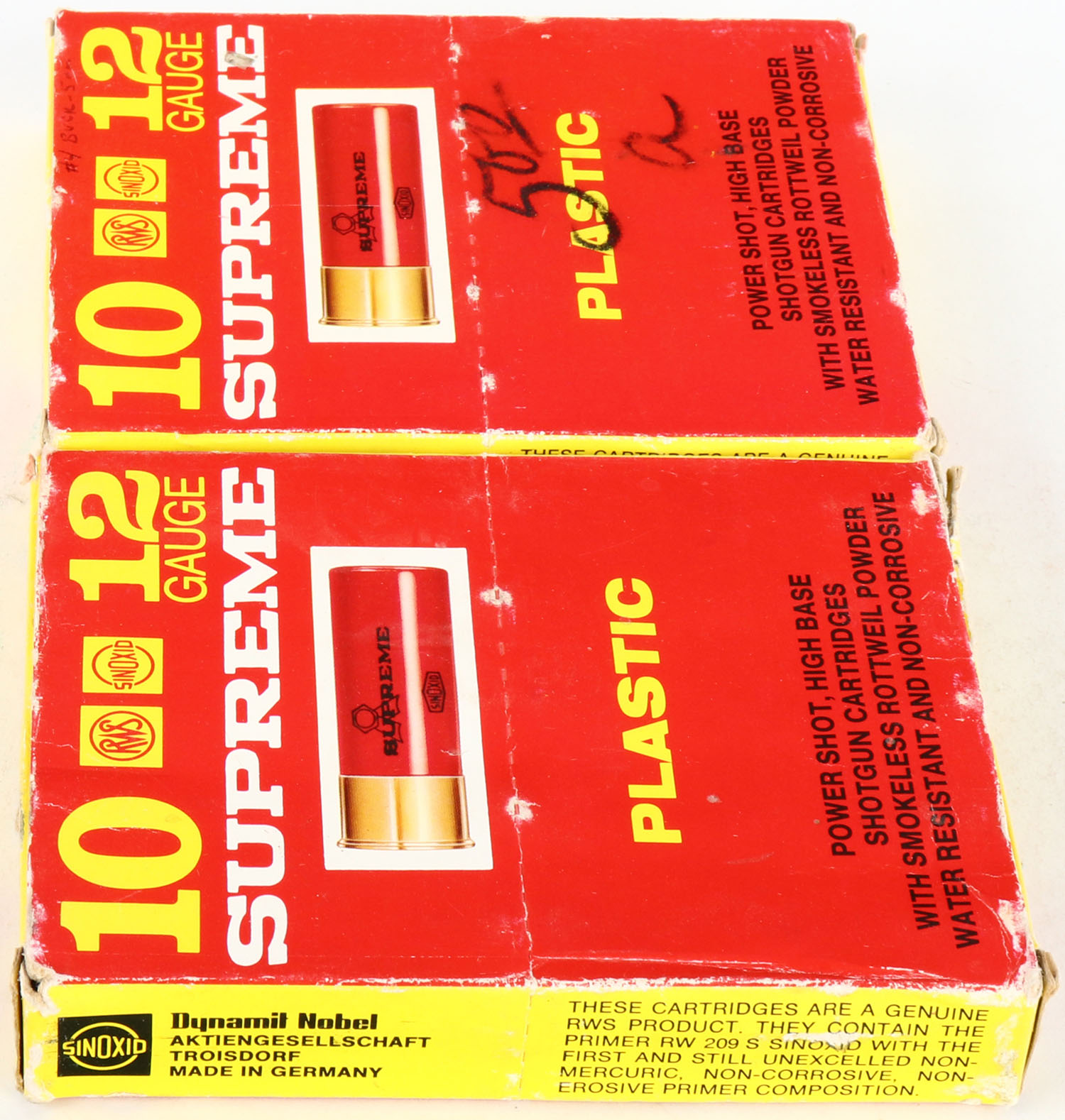 Lot of 2 Supreme, 12ga., 1pc., Full, shot size AA & AAA, multi-colored box. Grade: Excellent - Value: 6 to 30