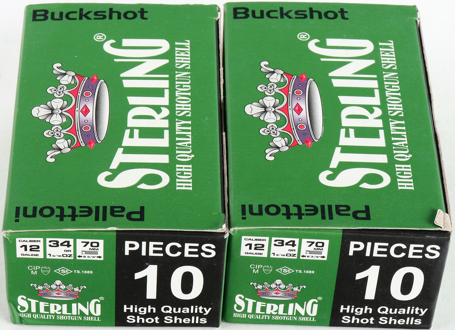 Lot of 2 Sterling, 12ga., 1pc., Full, shot size Buckshot, multi-colored box. Grade: MINT - Value: 10 to 30